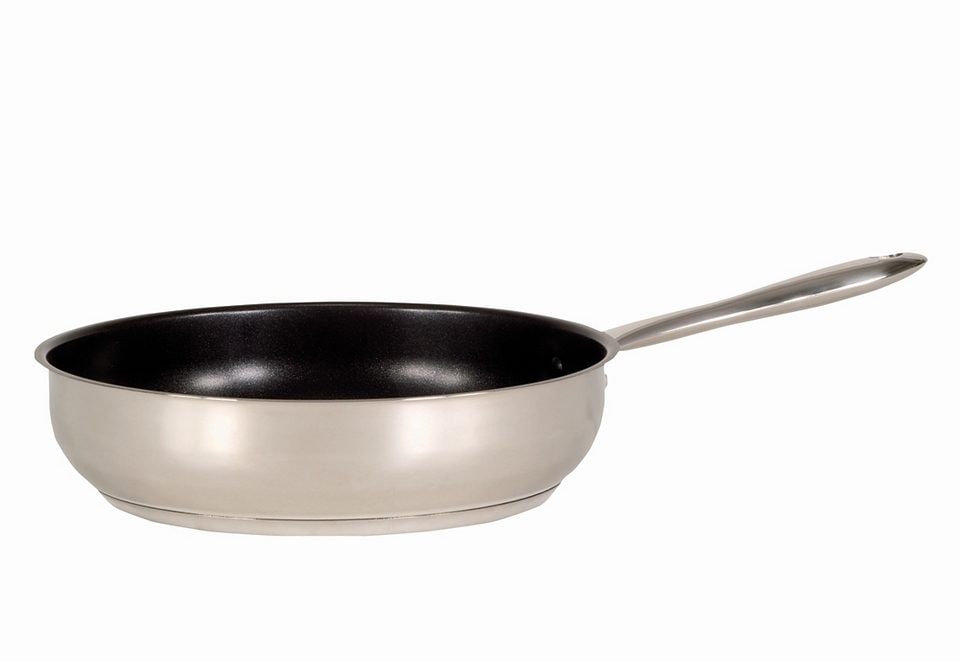 Edelstahlpfannen-Serie »Miami« von Krüger. Innen mit schwarzer GREBLON NewTec Beschichtung für optimale Bratqualität. Die Pfannen-Serie hat Edelstahlgriffe und ist für alle Herdarten geeignet, auch für Induktion.