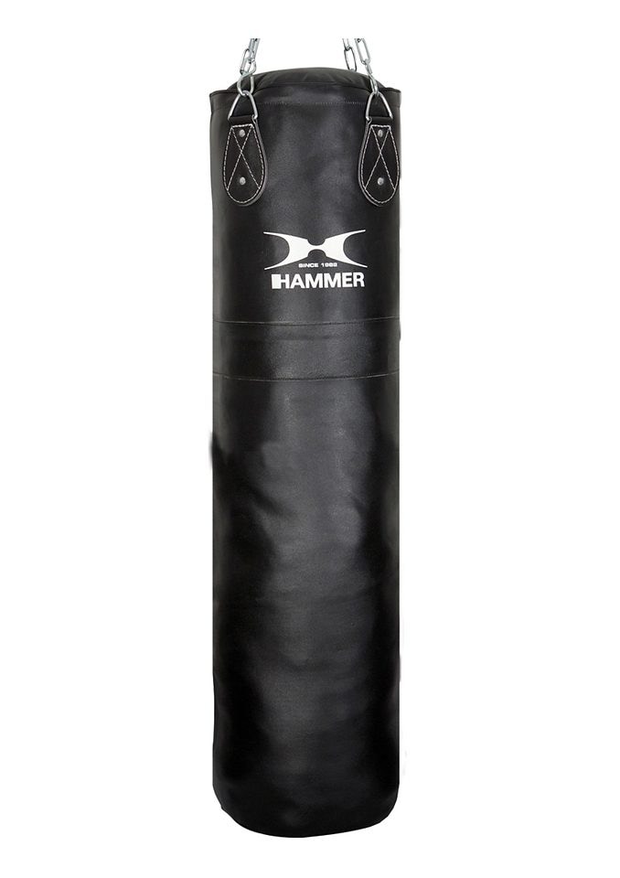 Lieferbar in 3 Größen. Ein High End-Boxsack aus Rindsleder von Hammer. Der Boxsack eignet sich optimal für professionelles Sandsacktraining und Wettkampfvorbereitung. Gehalten wird das Modell Premium von 4 verchromten Stahlketten und Drehwirbeln. Durch die Länge und die gute Qualität der Oberfläche eignet sich das Modell auch optimal für Kicktechniken mit dem Fuß.