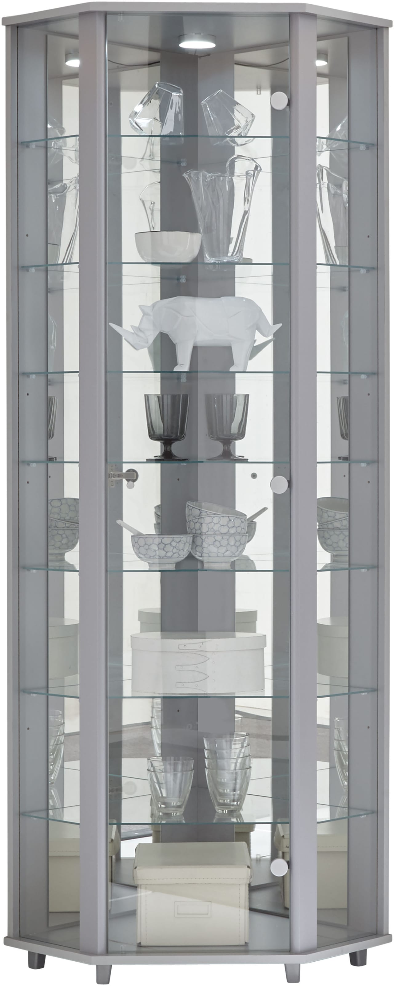 fif möbel Eckvitrine »TRIO Höhe ca. 172 cm, ink. Beleuchtung« Eckvitrine/Glasvitrine 1x Glastür, perfekt für Sammler, Sammlervitrine