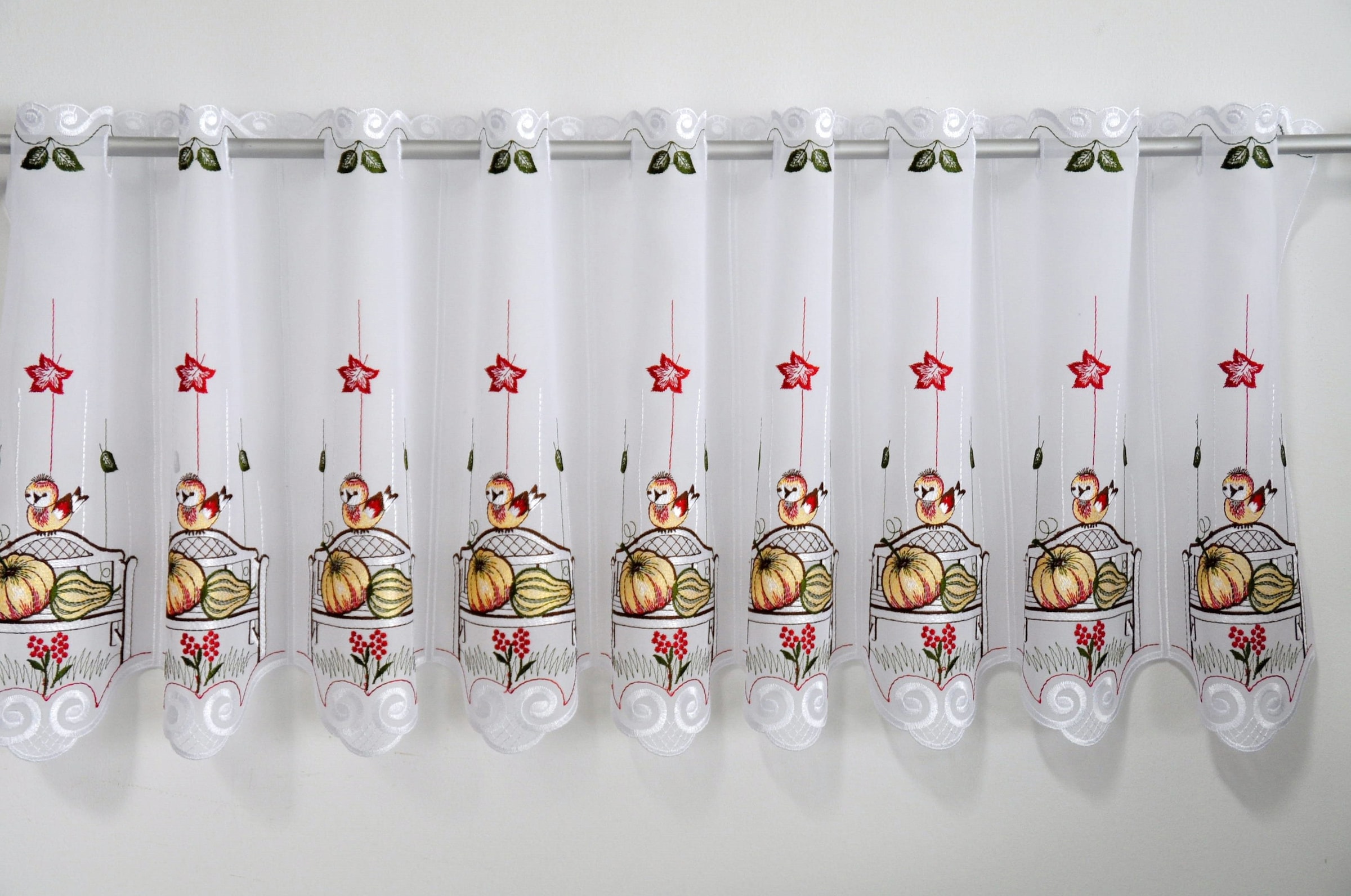 Stickereien Plauen Scheibengardine »Herbst« Durchzuglöcher 1 Stk. tlg. veredelt mit echter Plauener Spitze Stickerei
