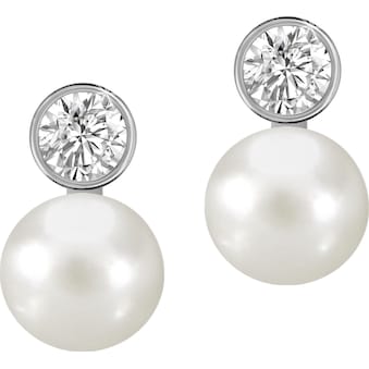 - Ohrringe für Damen mit Glas Kristallen und Süßwasserperlen in Weiß