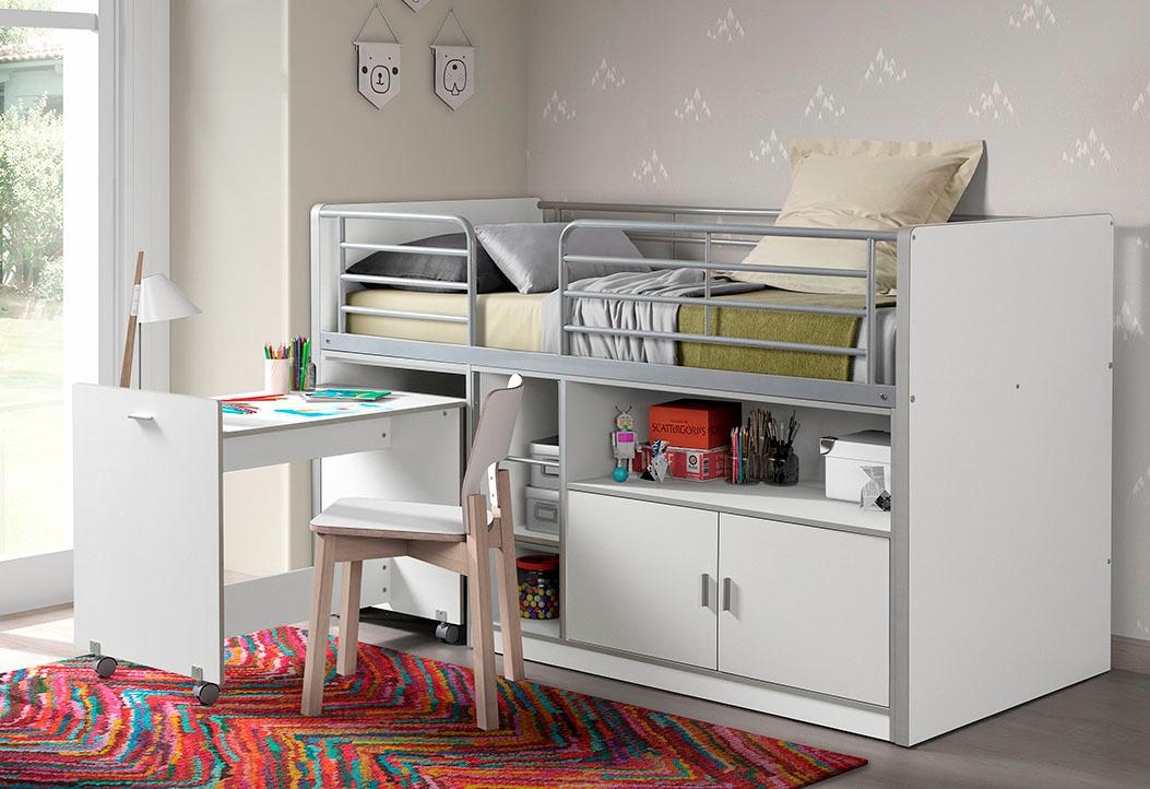 Vipack Hochbett »Bonn, viel Funktion auf kleinem Raum, mit pflegeleichter Oberfläche« B/H/T ca. 207x116x98cm, inkl. Bodenplatten, Schreibtisch und Leiter, Regalschrank und Ablageflächen, Absturzschutz, Farben zur Auswahl