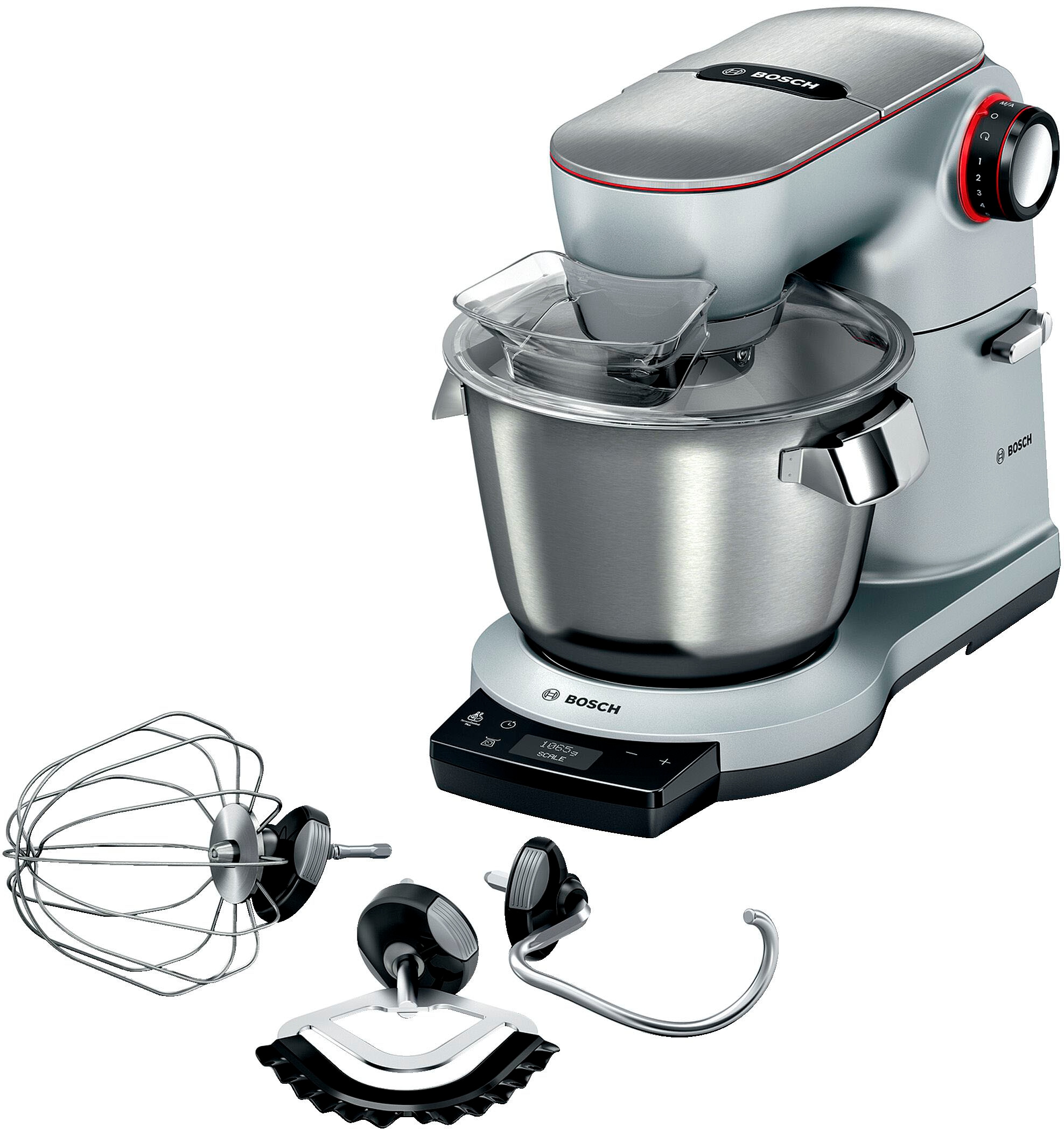 BOSCH Küchenmaschine »Serie 8 MUM9AX5S00, integr. Waage & Timer, Automatikprogramme, silber« Edelstahlschüssel, Knethaken/Rühr-/Silikonbesen, spülm.fest