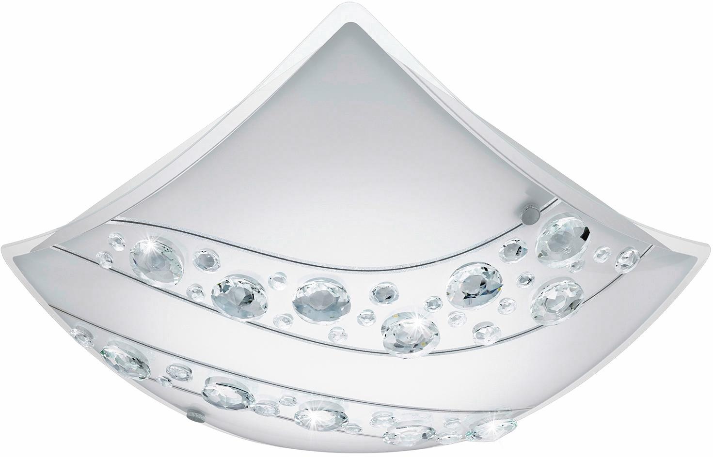 Die stylische Deckenleuchte der Serie »NERINI«, 1-flammig aus Stahl und Glas mit Kristallen. Sie überzeugt durch ihr modernes Design und schafft wundervolle glänzende Lichteffekte in Ihrem zu Hause. Inklusive energiesparendem LED-Leuchtmittel, fest integriert. Weitere Details: 1-flammig. 16 Watt. 1500 Lumen. 4000 Kelvin. Inkl. LED-Leuchtmittel, fest integriert. Material: Stahl, Kristallglas. Nicht dimmbar. Geringer Energieverbrauch aufgrund LED-Technik. Gewichteter Energieverbrauch kWh/1000 h: 16. Länge 34 cm. Breite 34 cm. Höhe/Ausladung 9,5 cm. Lieferant: Eglo. Lieferanten-Artikel-Nr.: 95578.