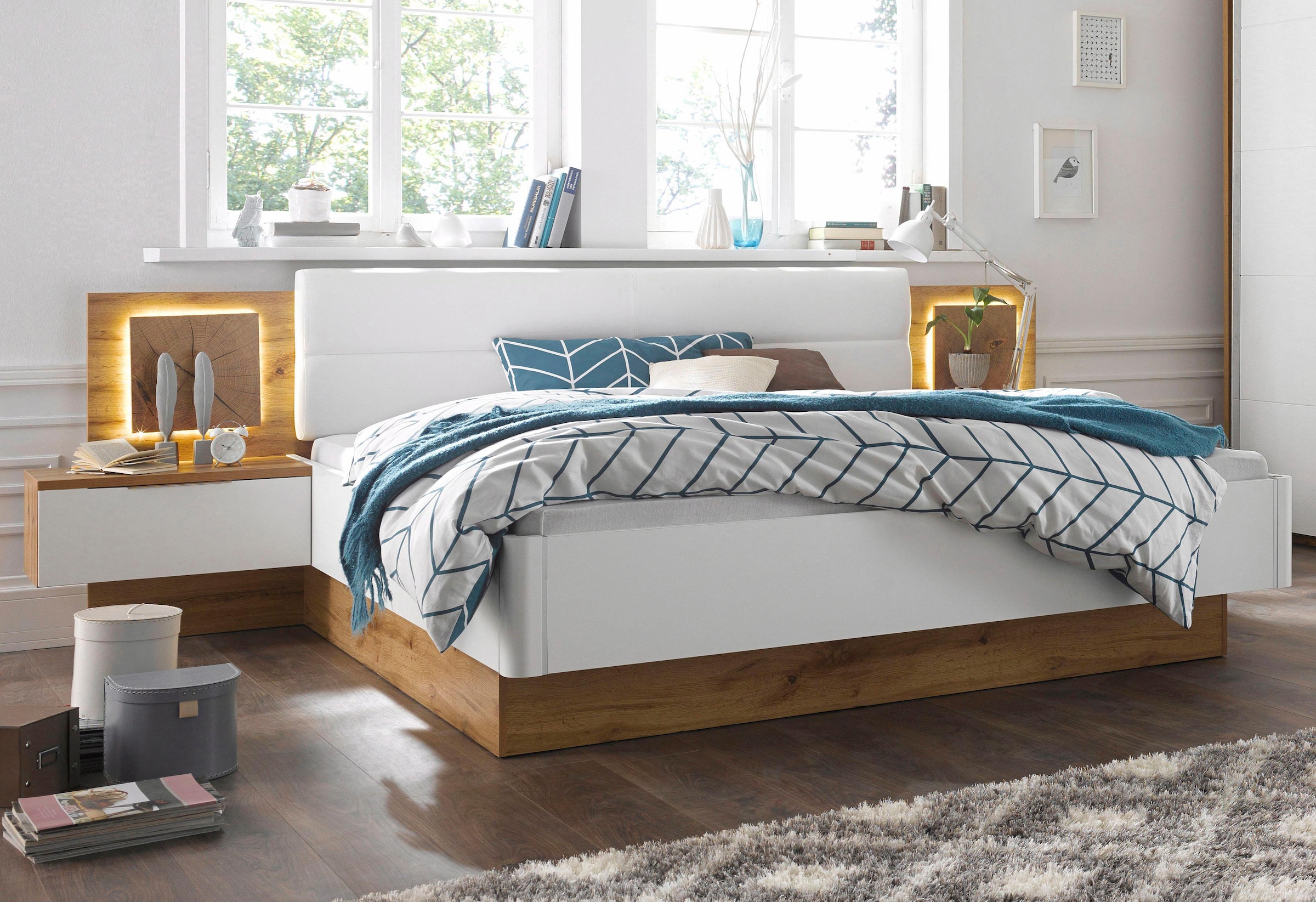 Schlafkontor Bettanlage »Capri« mit 2 Nachttischen und integrierter LED-Beleuchtung