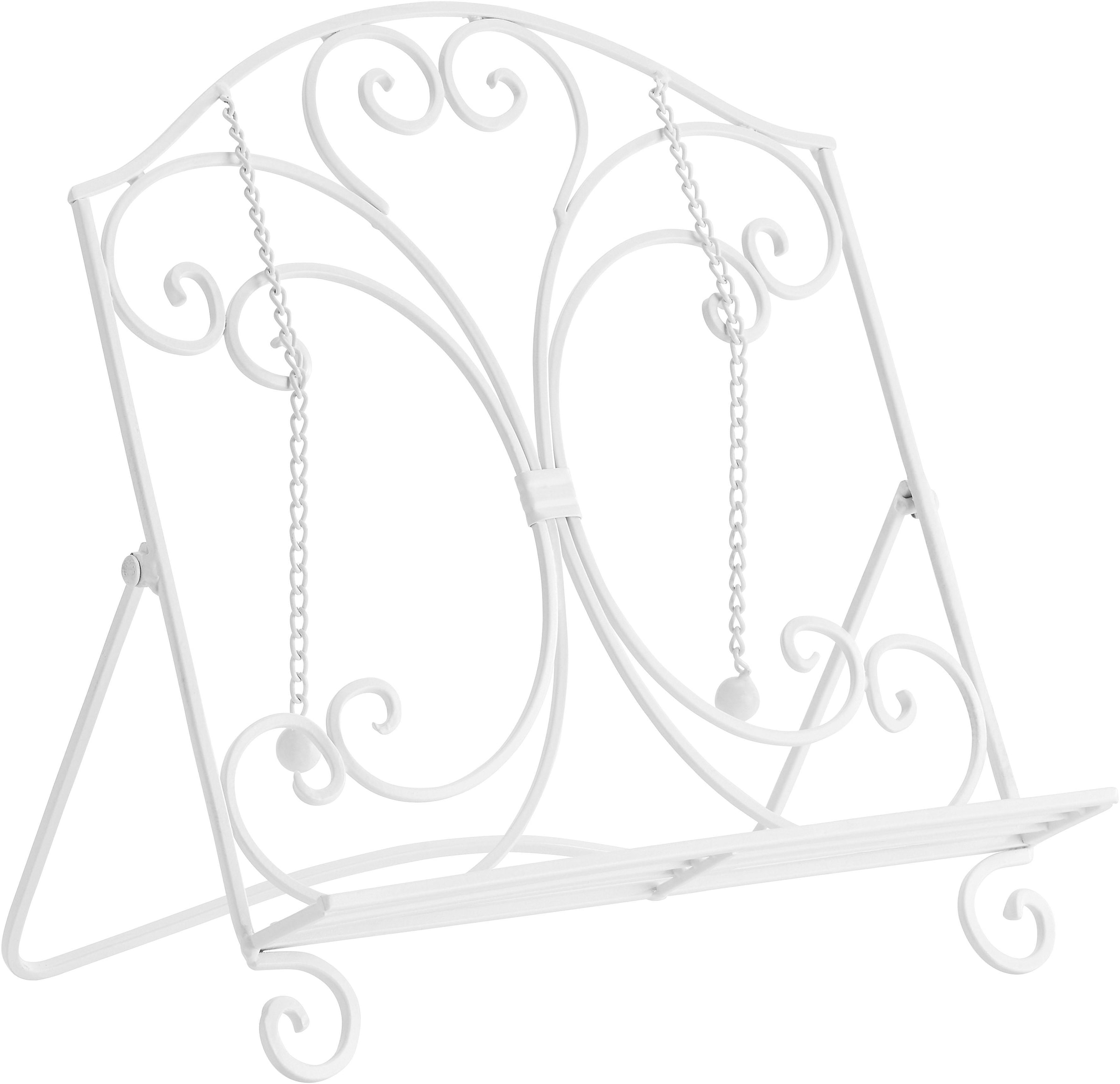 Der praktische Kochbuchhalter »Antik II« von Home affaire erweist sich als nützliche Haushaltshilfe in der Küche. Standfest hält er das Kochbuch in aufrechter Position, sodass die Rezepte während des Kochens leicht zu lesen sind. Dank der dafür vorgesehenen Halterungen bleibt die gewählte Buchseite offen, ohne dass die Seiten umblättern. Zudem ist der Buchständer im schönen Landhausstil gehalten und wird somit zum ansprechenden Wohnaccessoire in nostalgischer Optik. Er eignet sich auch als Geschenkidee. Begeistert mit optischen sowie praktischen Eigenschaften: der Kochbuchhalter »Antik II« von Home affaire.