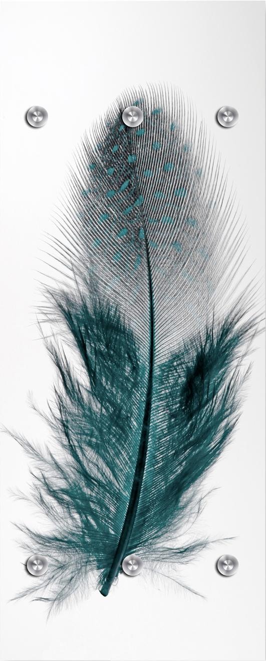 Dekorativ und praktisch zugleich ist die kompakte Garderobe »Feder«. Ihre sehenswerte Optik wird von einem hübschen Federmotiv bestimmt. Mit ihrem ästhetischen Design wird die Wandgarderobe zum absoluten Blickfang in jedem Dielenbereich. Dazu punktet sie dank mehrerer Design-Kleiderhaken aus Edelstahl mit einem tollen Platzangebot für Kleidung und Accessoires. An den unteren Haken können Kinder ihre Jacken optimal aufhängen. In puncto Qualität zeichnet sich die Kompaktgarderobe durch die Herstellung aus Acrylglas aus.