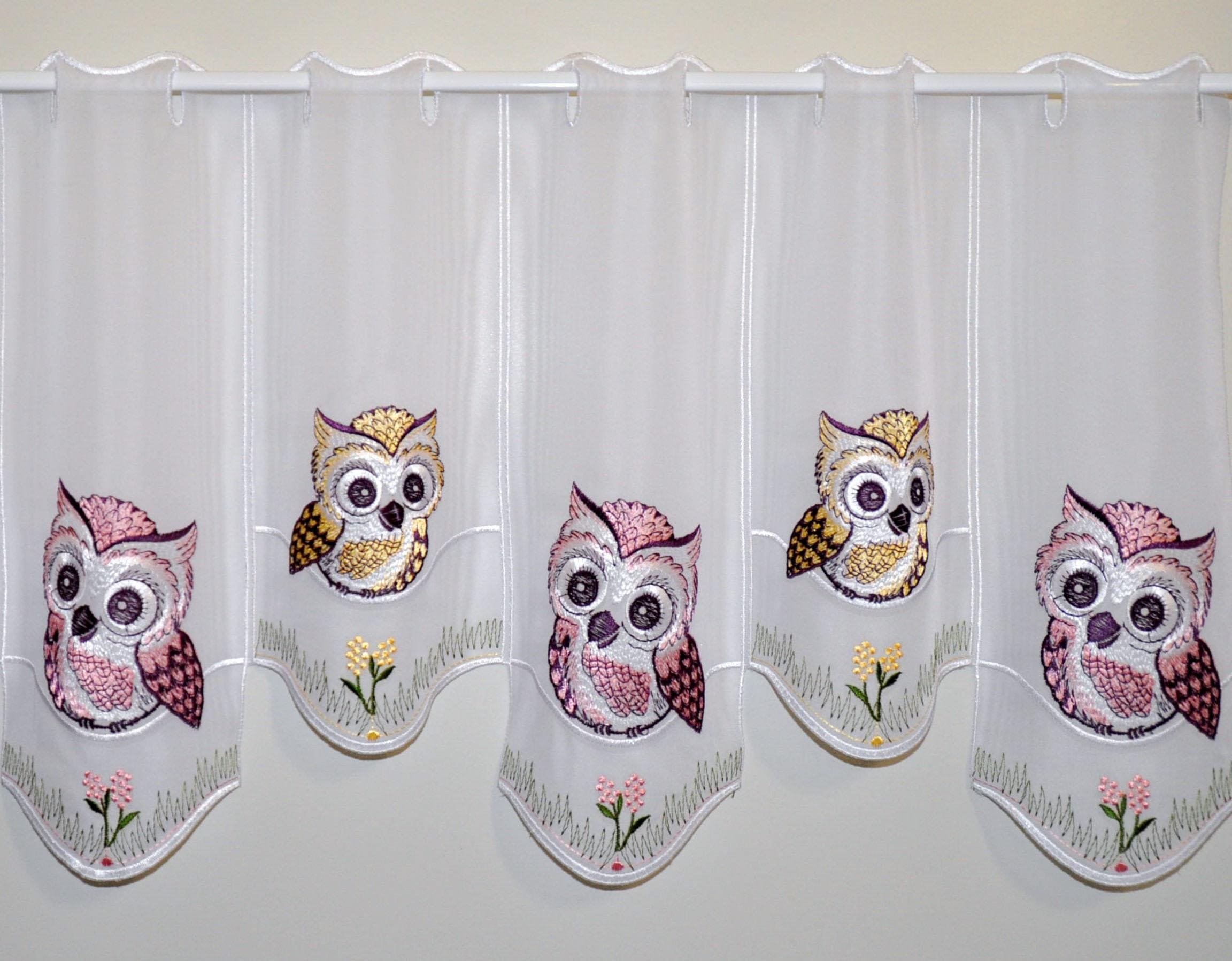 Stickereien Plauen Gardine »Eulen in Rosa-braun« Stangendurchzug 1 Stk. tlg.