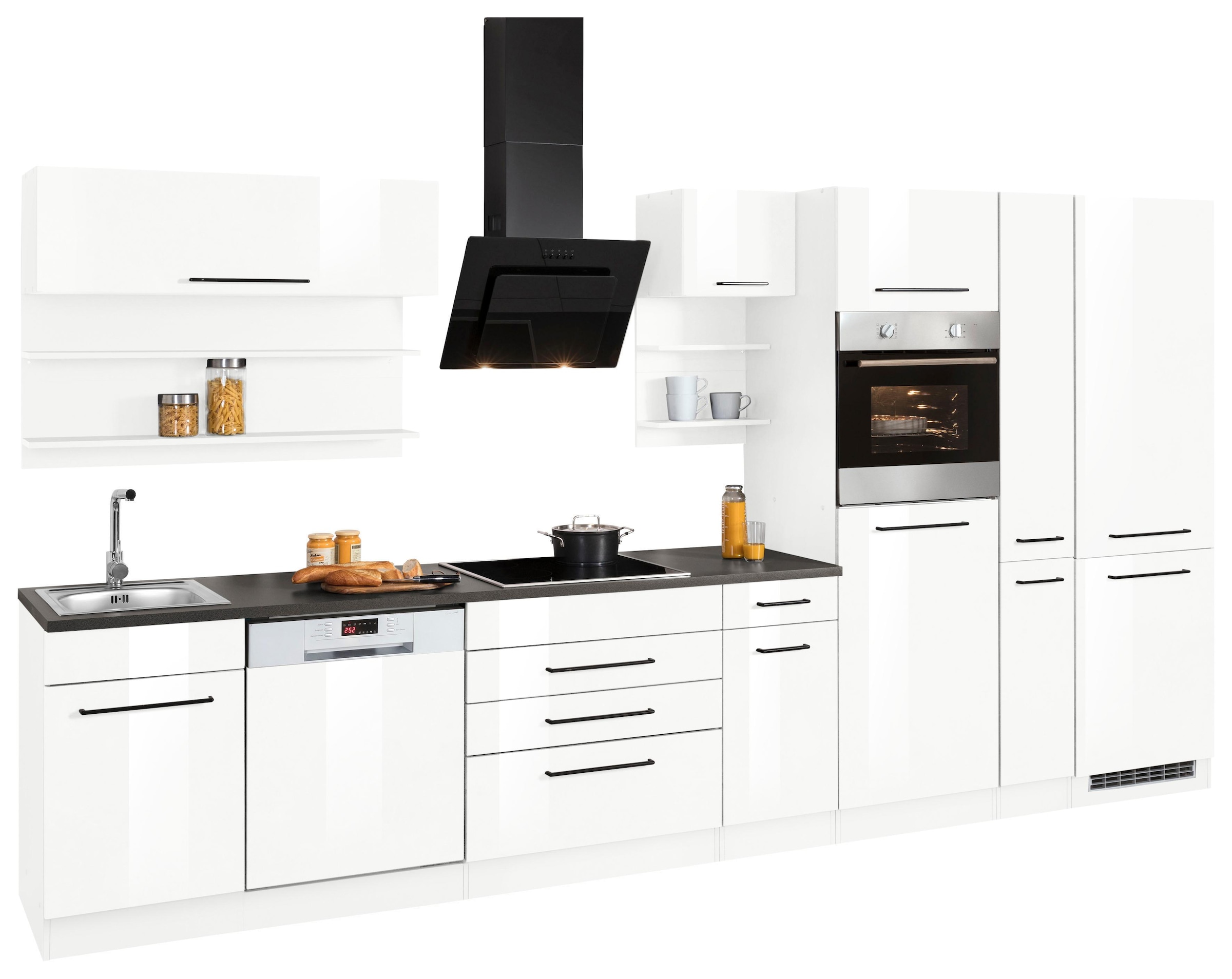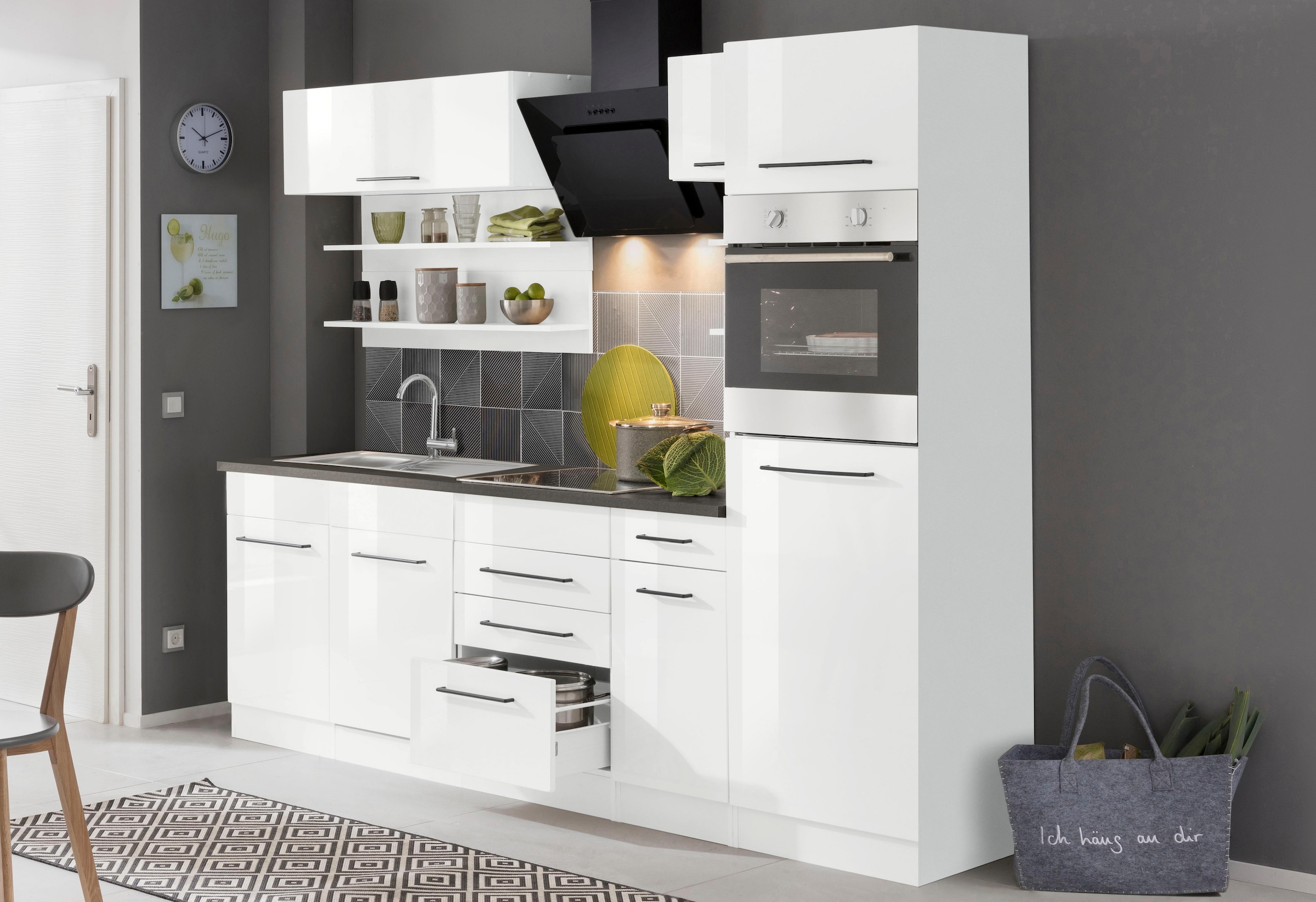 KOCHSTATION Küchenzeile »KS-Tulsa« ohne E-Geräte, Breite 210 cm, schwarze Metallgriffe, MDF Fronten