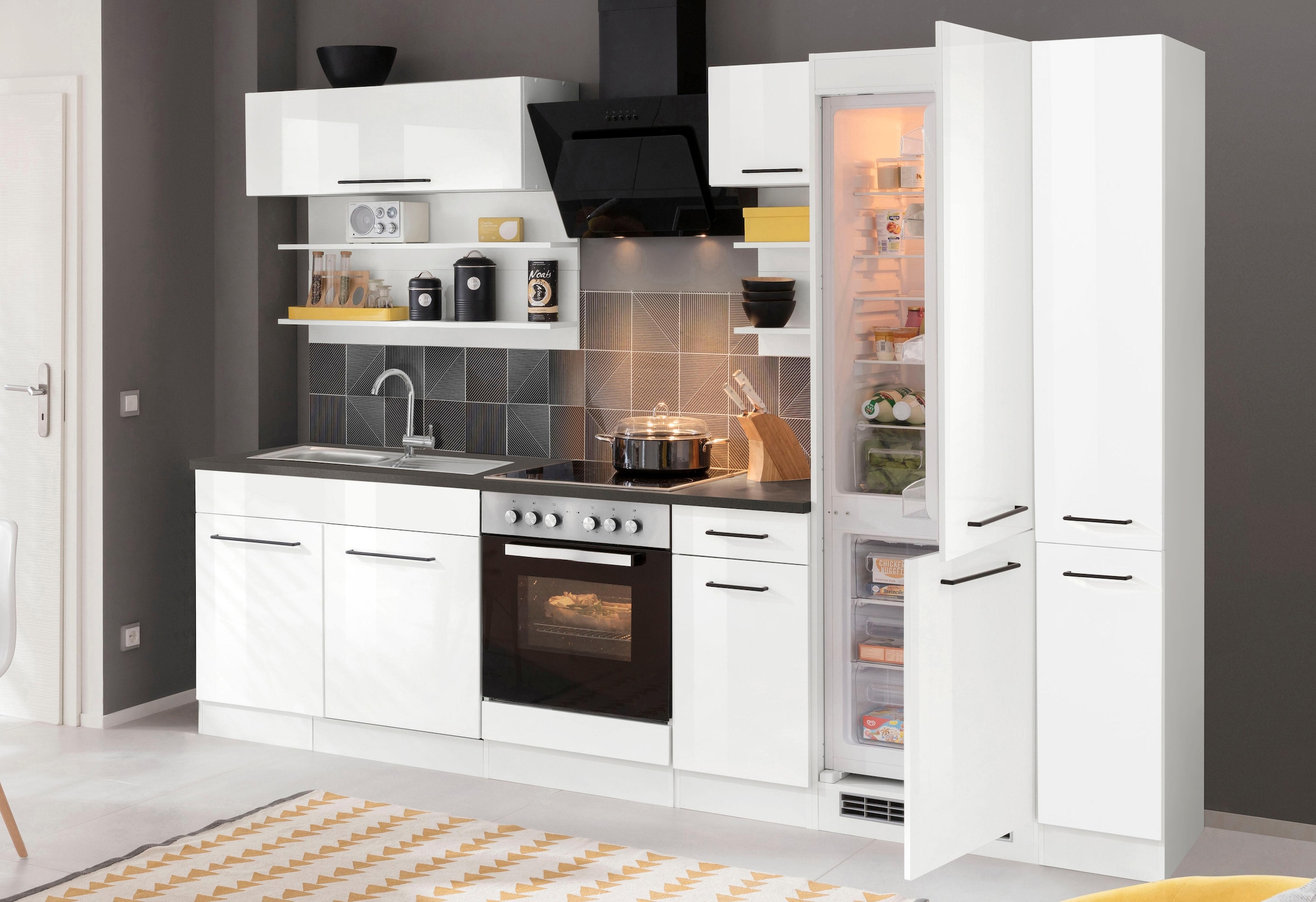 KOCHSTATION Küchenzeile »KS-Tulsa« ohne E-Geräte, Breite 300 cm, schwarze Metallgriffe, MDF Fronten