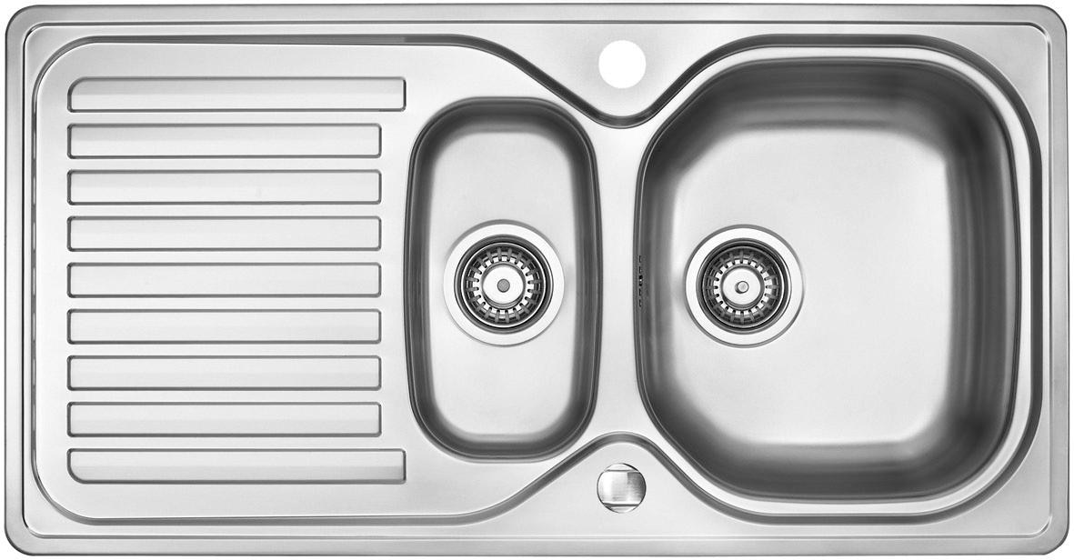 Wissenswertes | Einbauspüle Edelstahl seidenmatt mit Abtropffläche und Resteschale, reversibel, Siebkorb als Excenterventil 3 1/2« In folgenden Farben erhältlich: