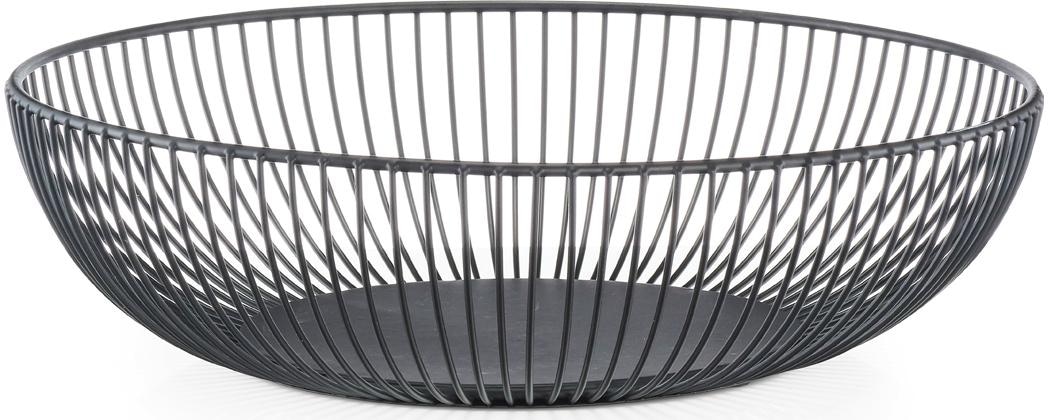 Stilvoller Obstkorb aus hochwertigem Metall in klarem Design. Diese Schale ist ein dekorativer Blickfang auf jeder Tafel und ideal zum Servieren von Obst geeignet. Die Schale sorgt für eine gute Belüftung der untersten Früchte und kann auch wunderbar als Brotkorb verwendet werden. Ø 28, Höhe 8 cm. Ø 25, Höhe 14 cm.
