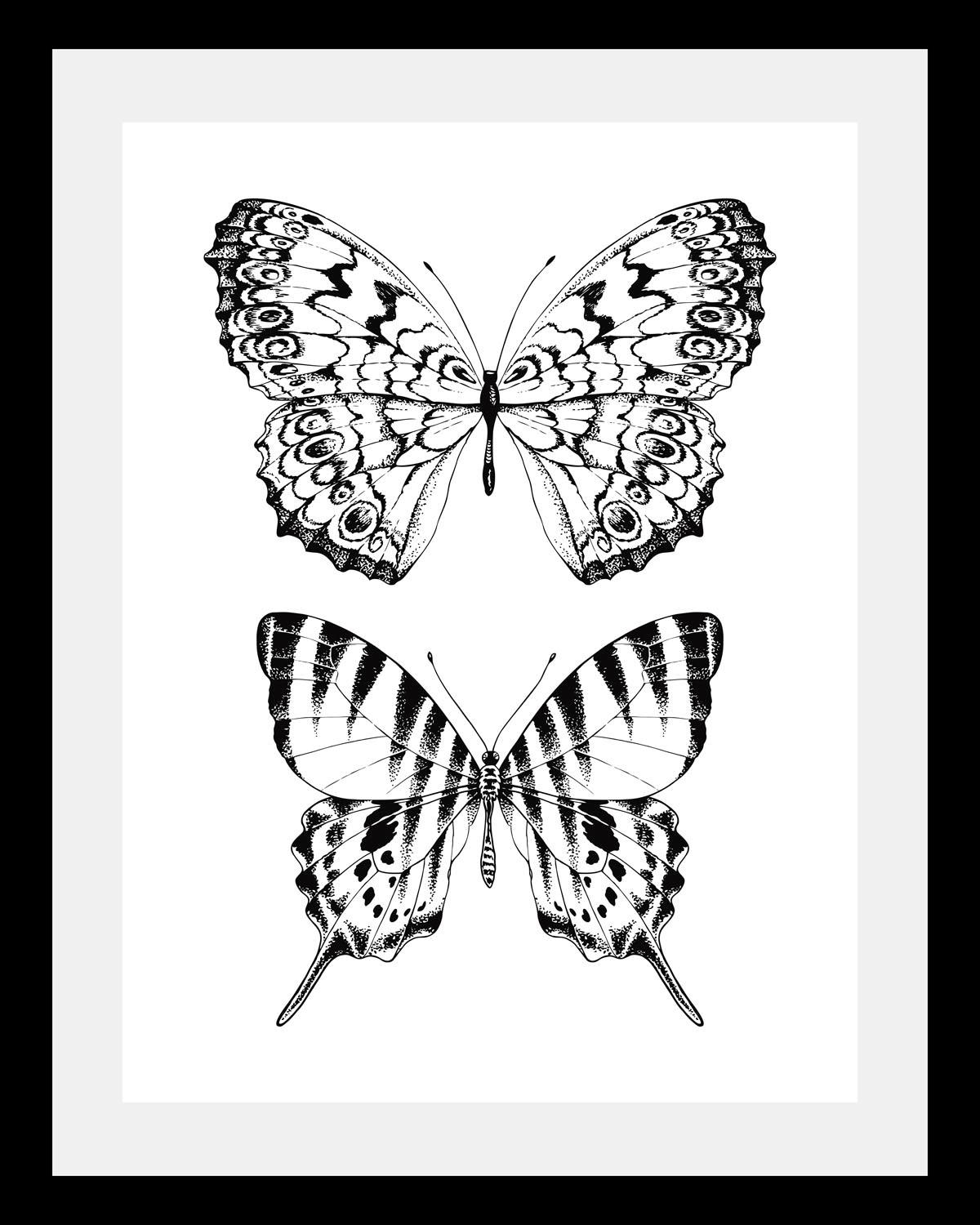 Motiv | Insekten, Kunst, Schmetterlinge, Schwarz-Weiß, Tiere |