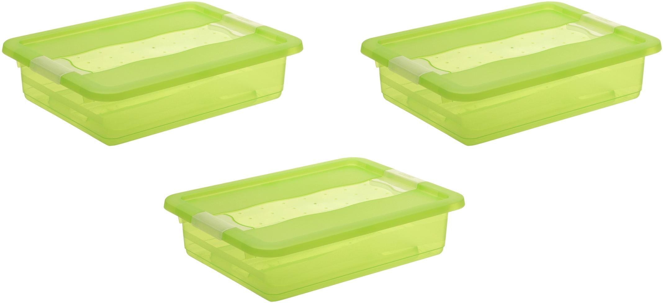 Die transparente Aufbewahrungsbox »cornelia« von keeeper sorgt überall im Haushalt für Ordnung. Sie ist ideal zum Aufbewahren, Transportieren und Sortieren der unterschiedlichsten Gegenstände geeignet. Der Deckel mit Schiebeverschluß lässt sich zuverlässig verschließen und dank der transparenten Seitenwände lassen sich die verstauten Sachen auch leicht wiederfinden. Die praktischen Ordnungshelfer sind aufeinander und ineinander stapelbar und bieten genügend Platz für die vielen kleinen Dinge des täglichen Lebens. Produktdetails: Transparente Box mit Deckel zum Aufbewahren von Deko & Hobbyartikeln und anderen Kleinteilen. Deckel mit Schiebeverschluß. Einsichtmöglichkeit von allen Seiten. Sicheres Stapeln durch leicht erhöhten Deckelrand. Unterteile und Deckel platzsparend ineinander nestbar. Montierte Boxen aufeinander stapelbar. Mit Griff am Boden zum einfachen Herausziehen. Einfache Reinigung. Aus hochwertigem Kunststoff. Material: Polypropylen (PP). Made in Europa. Das 3-teilige Set besteht aus: 3 Aufbewahrungsboxen mit Deckel, Maße (LxBxH): je 39,5 x 29,5 x 9,5 cm, Fassungsvermögen: je 7 l.