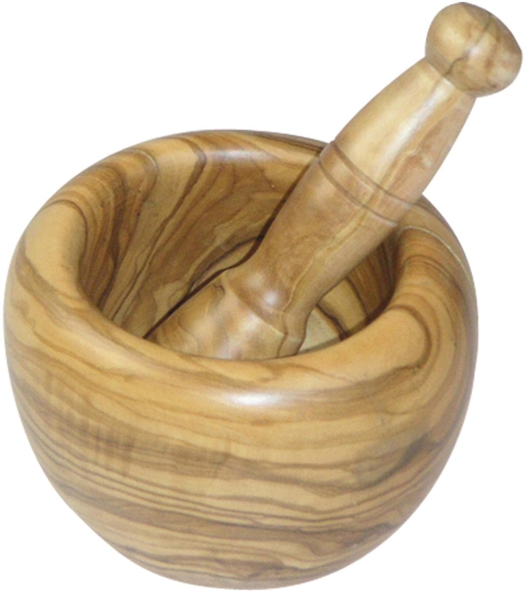 - Hochwertiger Olivenholz-Mörser mit Stößel