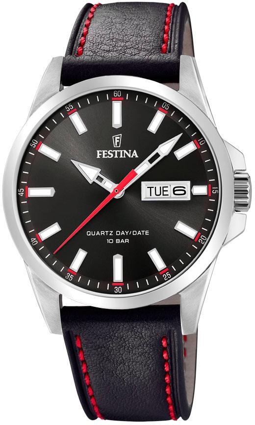 Festina Quarzuhr Armbanduhr, Herrenuhr, Damenuhr, Lederarmband, Datum