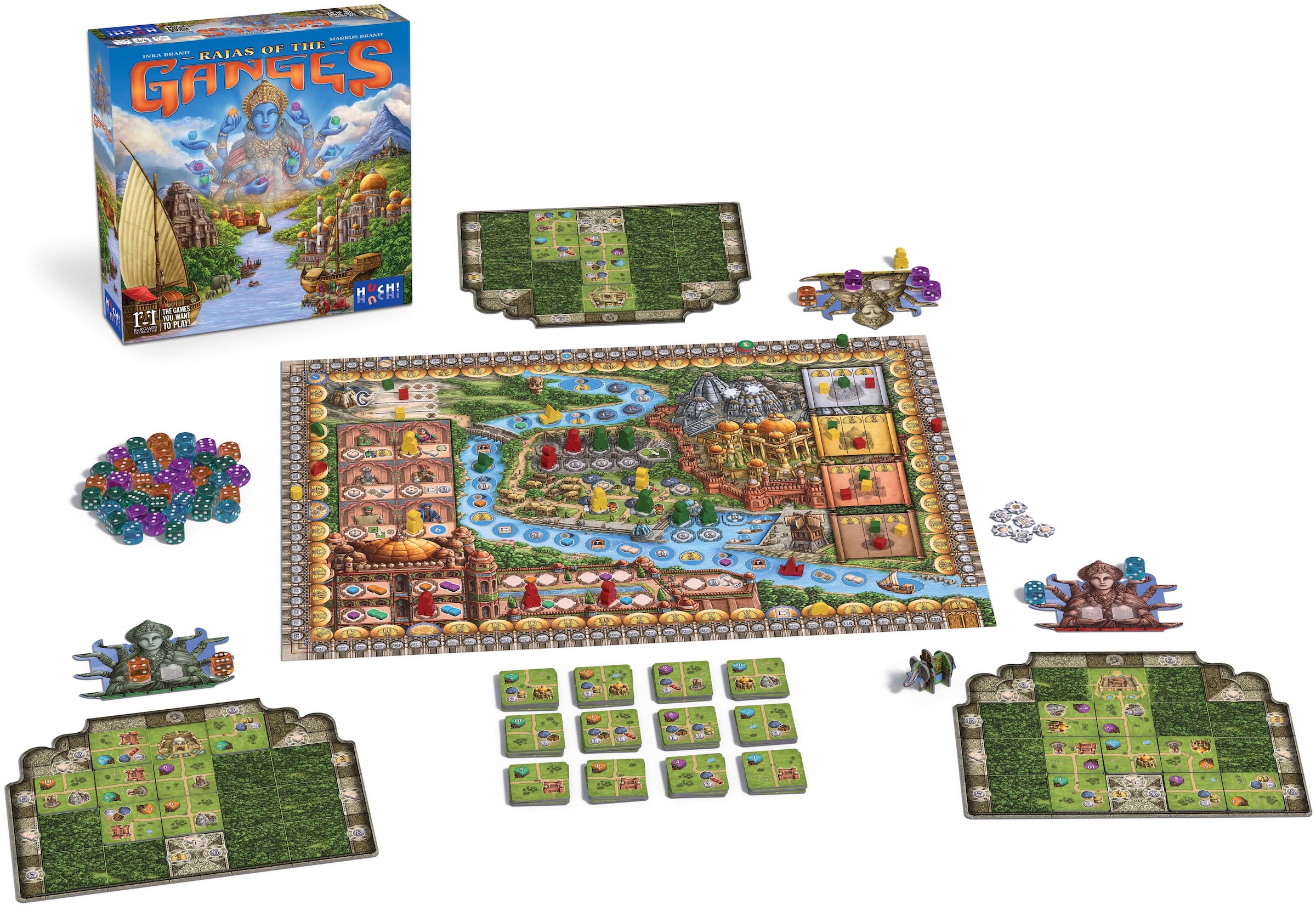 In dem Strategiespiel »Rajas of the Ganges« von Huch! tauchen die Spieler ab nach Indien in der Ära des Mogulreiches. Das Land entwickelt sich gerade zu einem der mächtigsten Reiche seiner Zeit. Der Großmogul beauftragt seine ehrwürdigsten Fürsten (die Rajas), neu erworbene Ländereien zu prächtigen und wohlhabenden Provinzen auszubauen. Ohne die Rolle des Karmas zu unterschätzen, versuchen die Spieler als Rajas, sich in einem anspruchsvollen Zusammenspiel von Ansehen und Reichtum am vortrefflichsten zu behaupten. Der Gewinner wird am Ende in den Legenden seines Volkes unsterblich werden.