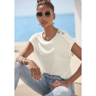 LASCANA Strandshirt mit Zierband im oberen Rücken, Longshirt, 3/4-Ärmel, schulterfrei