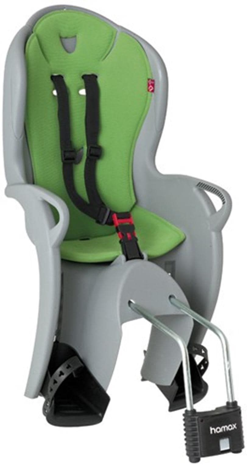 Der Fahrradkindersitz, in silber mit großem grünem Polster, ist für Kinder ab 9 Monaten und bis maximal 22 kg geeignet. Dank des Hamax Safety Systems ist eine sichere Montage garantiert. Durch den verstellbaren Sicherheitsgurt sowie die verstellbaren Fußstützen »wächst« der Fahrradsitz mit. Der Sitz hat eine Sicherheitsschnalle, die vom Kind nicht alleine geöffnet werden kann.