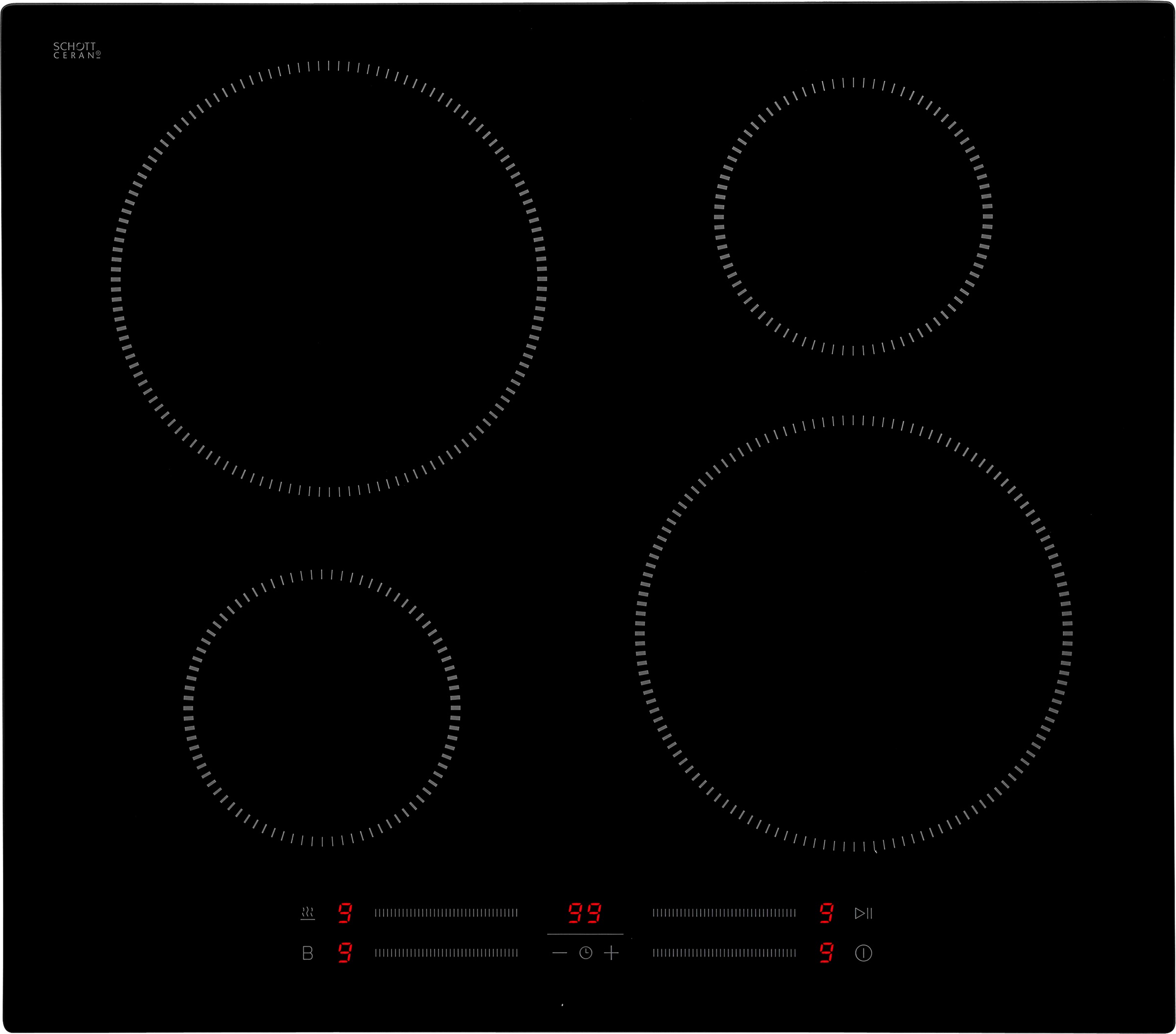 - Vier Kochzonen mit Durchmessern von 22 cm und 14 cm bieten dir Flexibilität beim Kochen