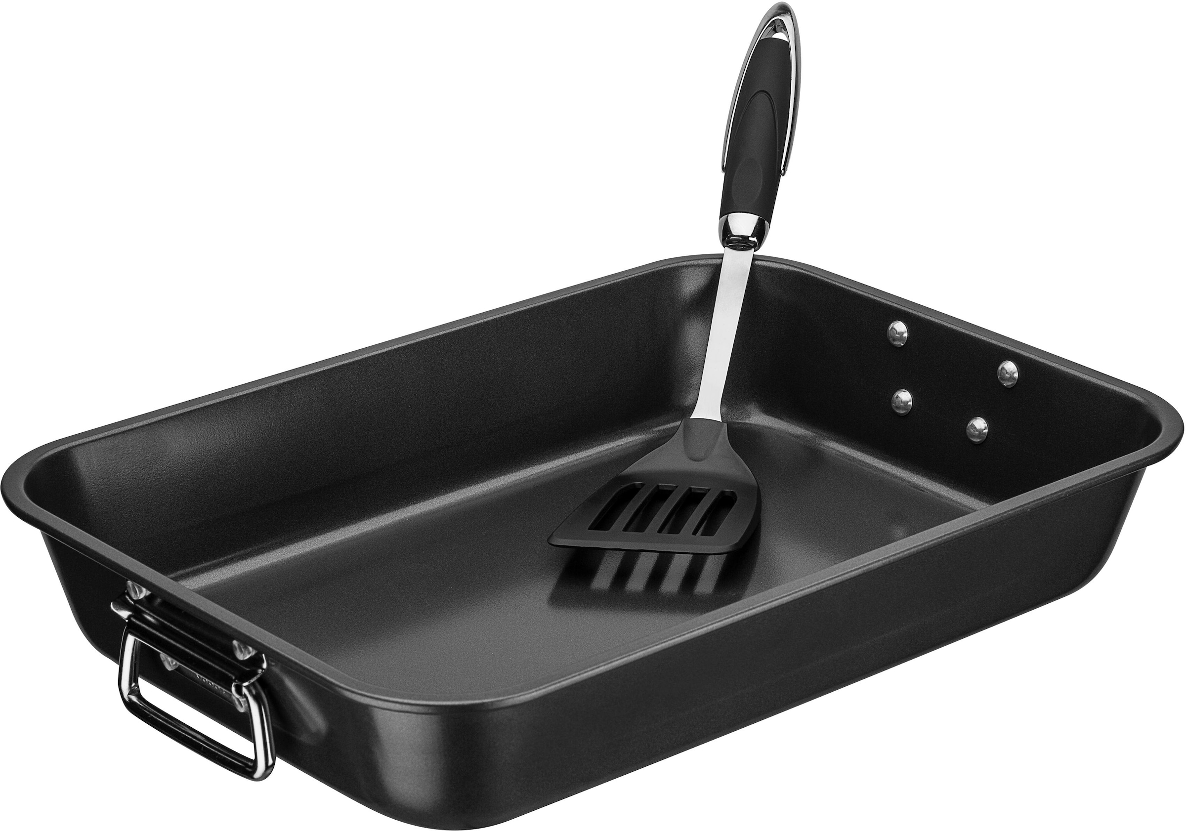GSW Brat-, Back- & Auflaufform aus Stahl mit Antihaft-Versiegelung und Pfannenwender. Die Auflaufform verfügt über einen extra hohen Rand und stabile Fallgriffe aus Edelstahl. Ideal zum Braten, Kochen, Backen und Servieren. Das praktische Set besteht aus einer Auflaufform und einem Pfannenwender. Spülmaschinengeeignet.