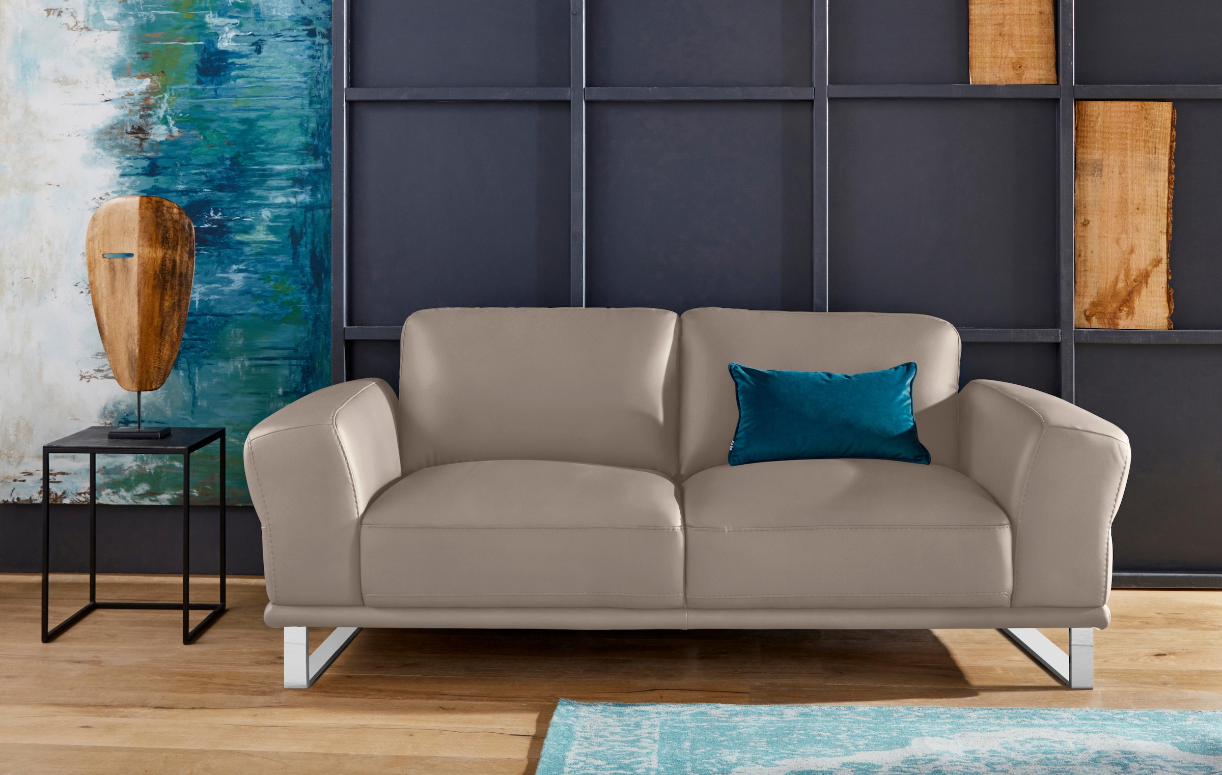 - Bequemes 2er-Sofa mit eleganten Metallkufen in Chrom glänzend