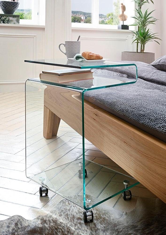 Der elegante Beistelltisch auf Rollen aus dem Hause Paroli beeindruckt mit einer interessanten Gestaltung. Sein Profil ist aus formgebogenem Klarglas erzeugt, das sich in mehreren Stufen hin- und her windet. Er besitzt einen Ablageboden im oberen Bereich, auf dem sich das Smartphone oder Zeitschriften ablegen lassen. Über den praktischen Rollen befindet sich ein weiterer Ablageboden mit Platz für Gläser, Bücher oder Dekorationsgegenstände. Durch seine pflegeleichte Oberfläche erweist sich der Tisch als alltagstauglich und erleichtert die Reinigung. Er passt zu diversen Einrichtungskonzepten und kann im Wohnzimmer, in der Küche oder im Schlafzimmer nützliche Dienste leisten. Mit dem eleganten Beistelltisch auf Rollen aus dem Hause Paroli erhält jede Wohnung eine stilvolle wie praktische Bereicherung.