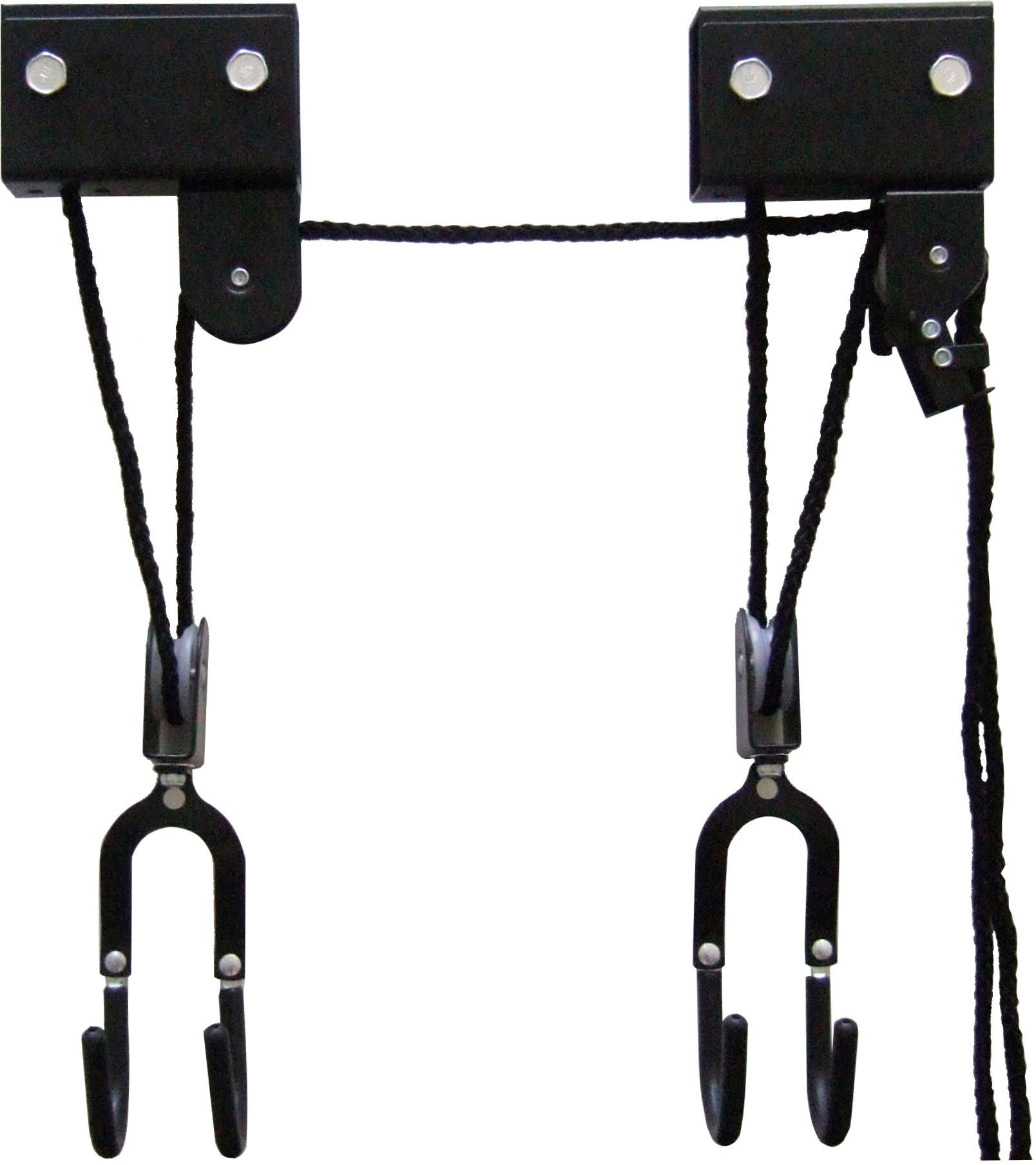 Der Bike Lift XL wird an der Decke befestigt und ist auch für schwerere Lasten wie z.B. E-Bikes geeignet. Durch die zusätzlichen Trageschlaufen können auch andere Gegenstände wie z.B. Dachboxen oder Ähnliches an die Decke hochgezogen werden. Eine Fallsicherung und Seilbremse verhindern ungewolltes Lösen des Seils.