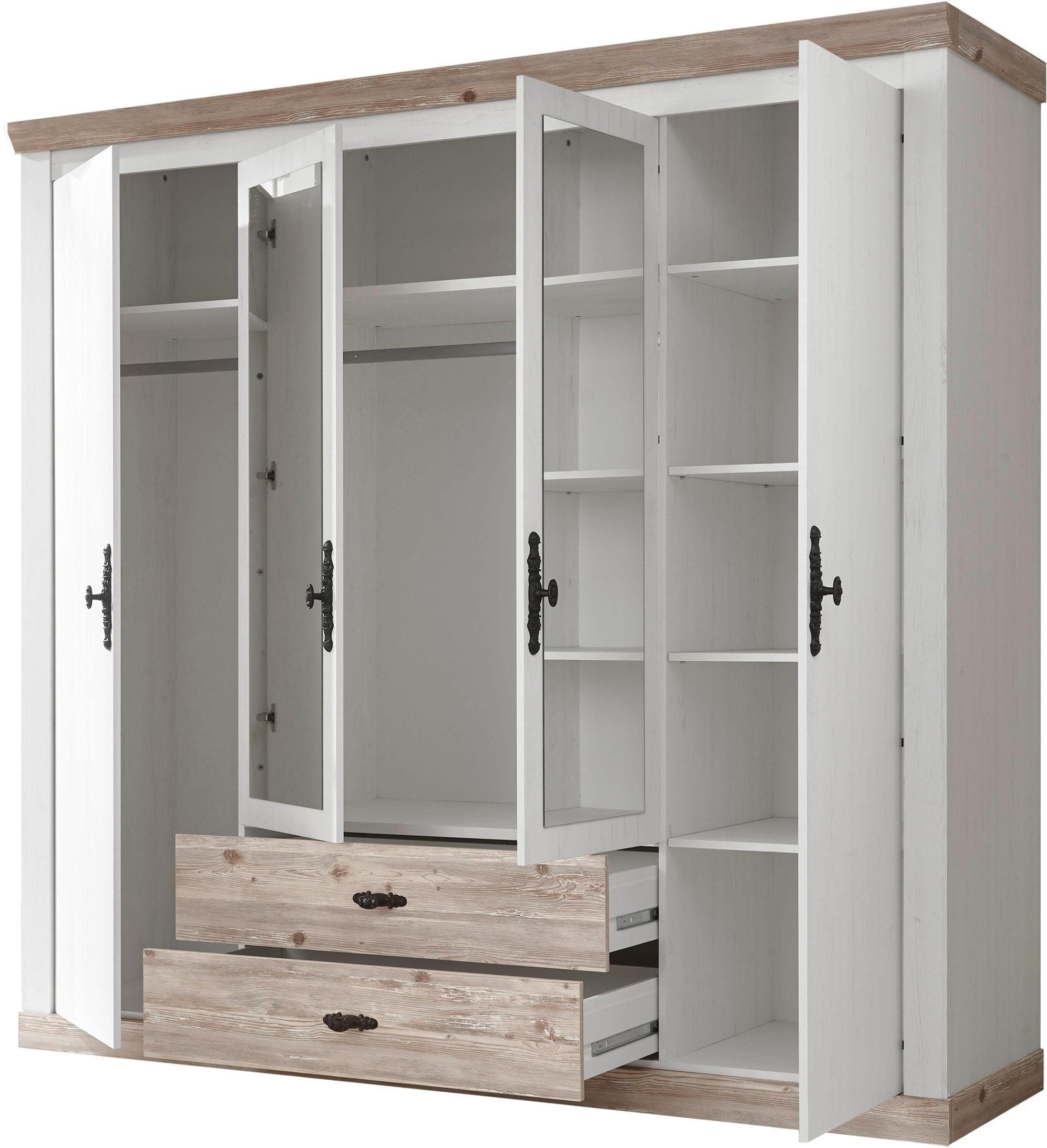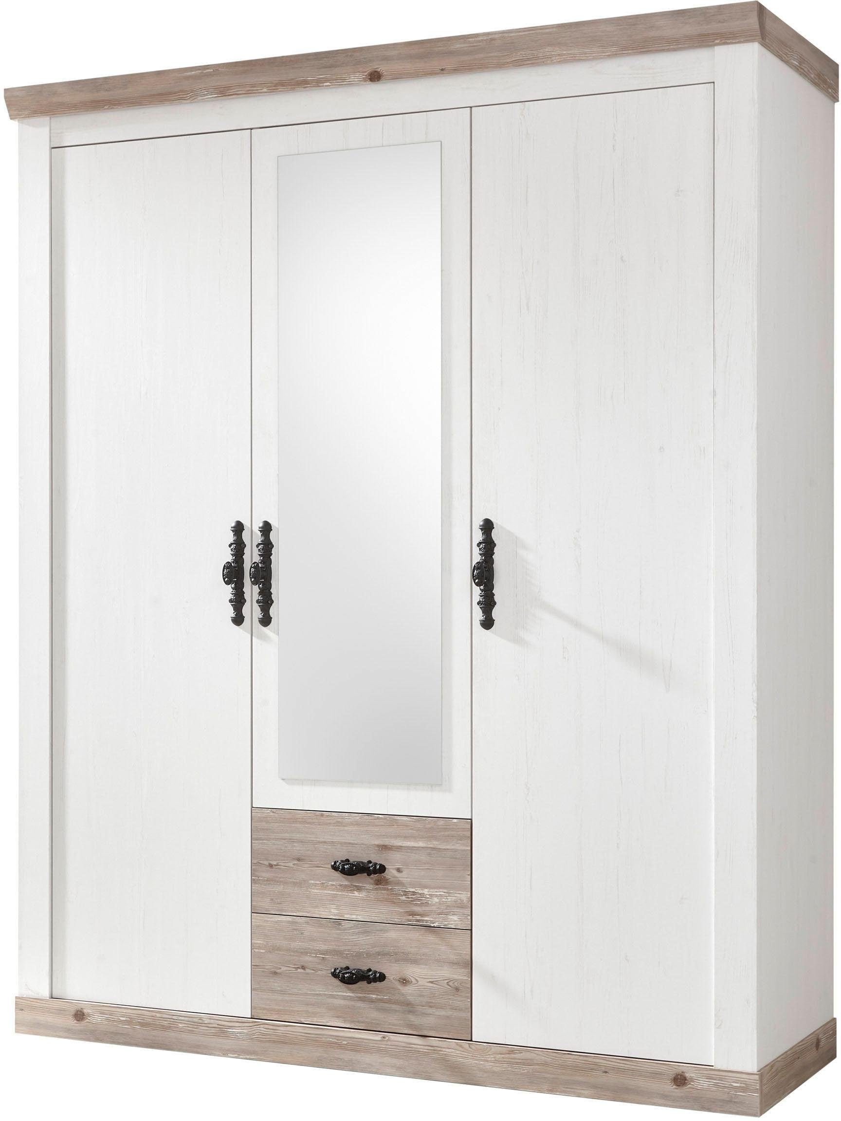 Home affaire Drehtürenschrank »Florenz Landhausschrank,rustikale Metallgriffe mit feinen Verzierungen« Kleiderschrank mit Spiegel Schlafzimmerschrank BESTSELLER Garderobe