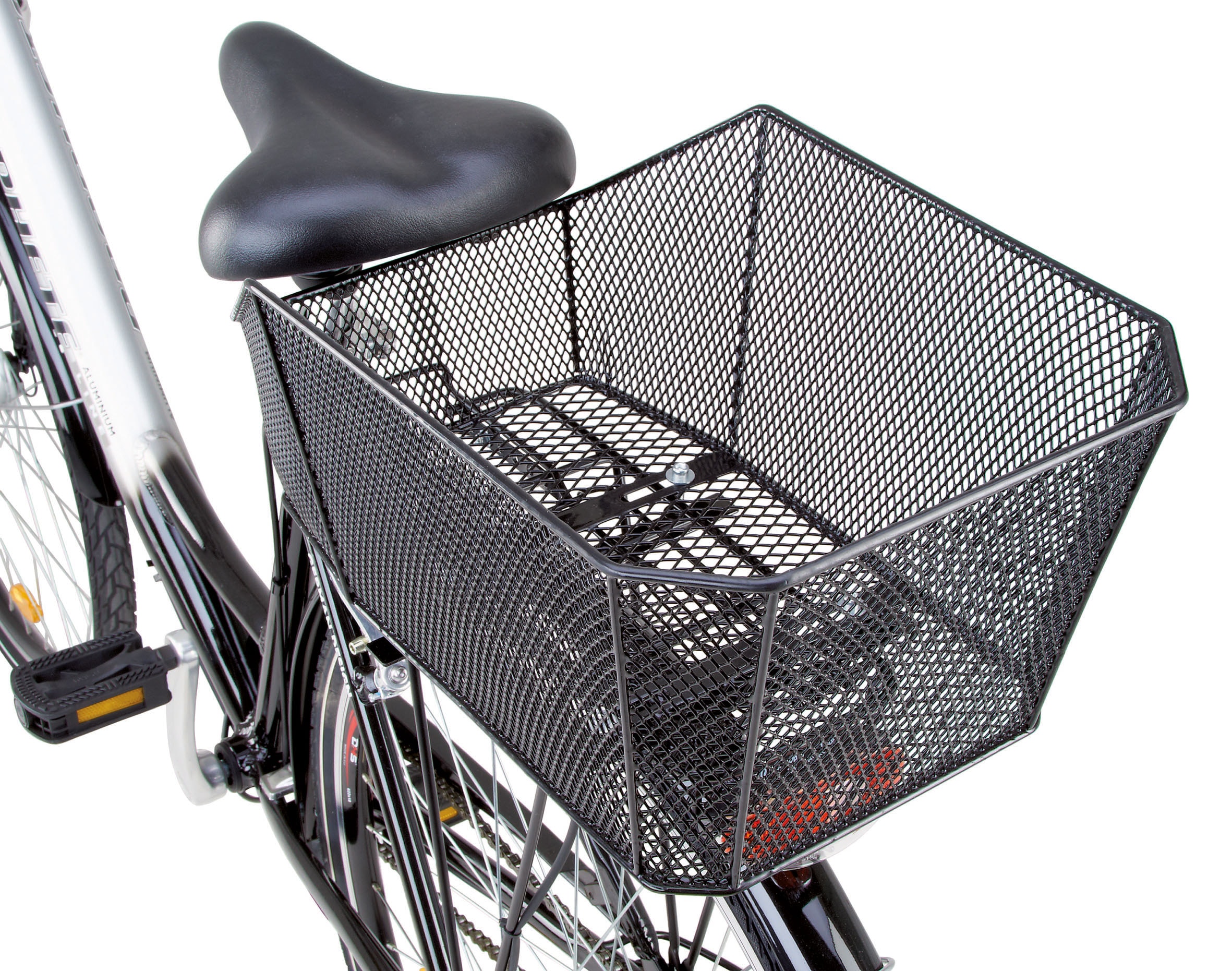 Prophete Fahrradkorb, schwarz. Der Prophete Fahrradkorb glänzt mit einem engmaschigen Wabengitter und wird fest am Gepäckträger des Fahrrads montiert. Der Korb besitzt eine PE-Kunststoffbeschichtung und eine Größe von 450/300/210 mm. Produktdetails: Zur festen Montage am Gepäckträger. Engmaschiges Wabengitter. PE-Kunststoffbeschichtung. Größe (L/B/H): 450/300/210 mm.