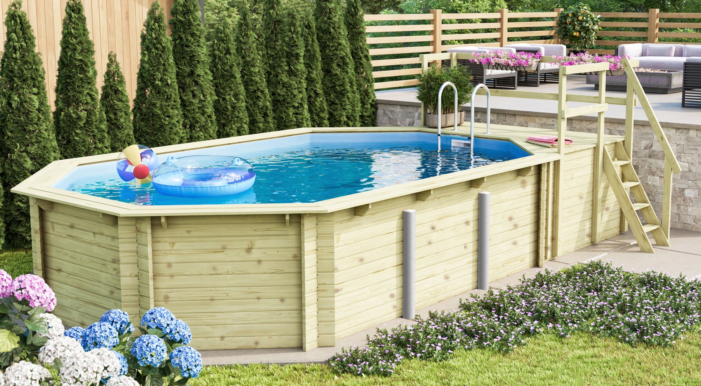 - Achteckpool »PALMA Set B BxLxH: 358x569x124 cm mit Sonnendeck« 38 mm starkes...KaribuUrsprünglicher PreisUVP 4.449,99 €Rabatt- 175,00 €Aktueller Preis4.274,99 €