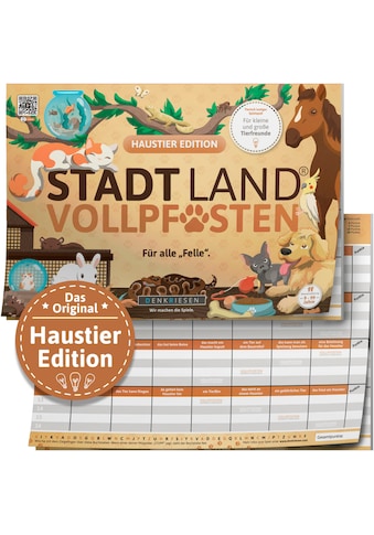 - Spiel »Stadt Land Vollpfosten® Haustier Edition "Für alle Felle."« Spielblock; Made in...DenkriesenUrsprünglicher PreisUVP 12,99 €Rabatt- 7 %Aktueller Preis12,08 €