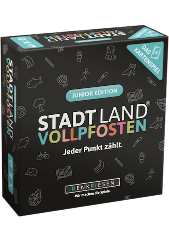 - Spiel »Stadt Land Vollpfosten, Junior Edition« Made in GermanyDenkriesenUrsprünglicher PreisUVP 21,99 €Rabatt- 12 %Aktueller Preis19,29 €