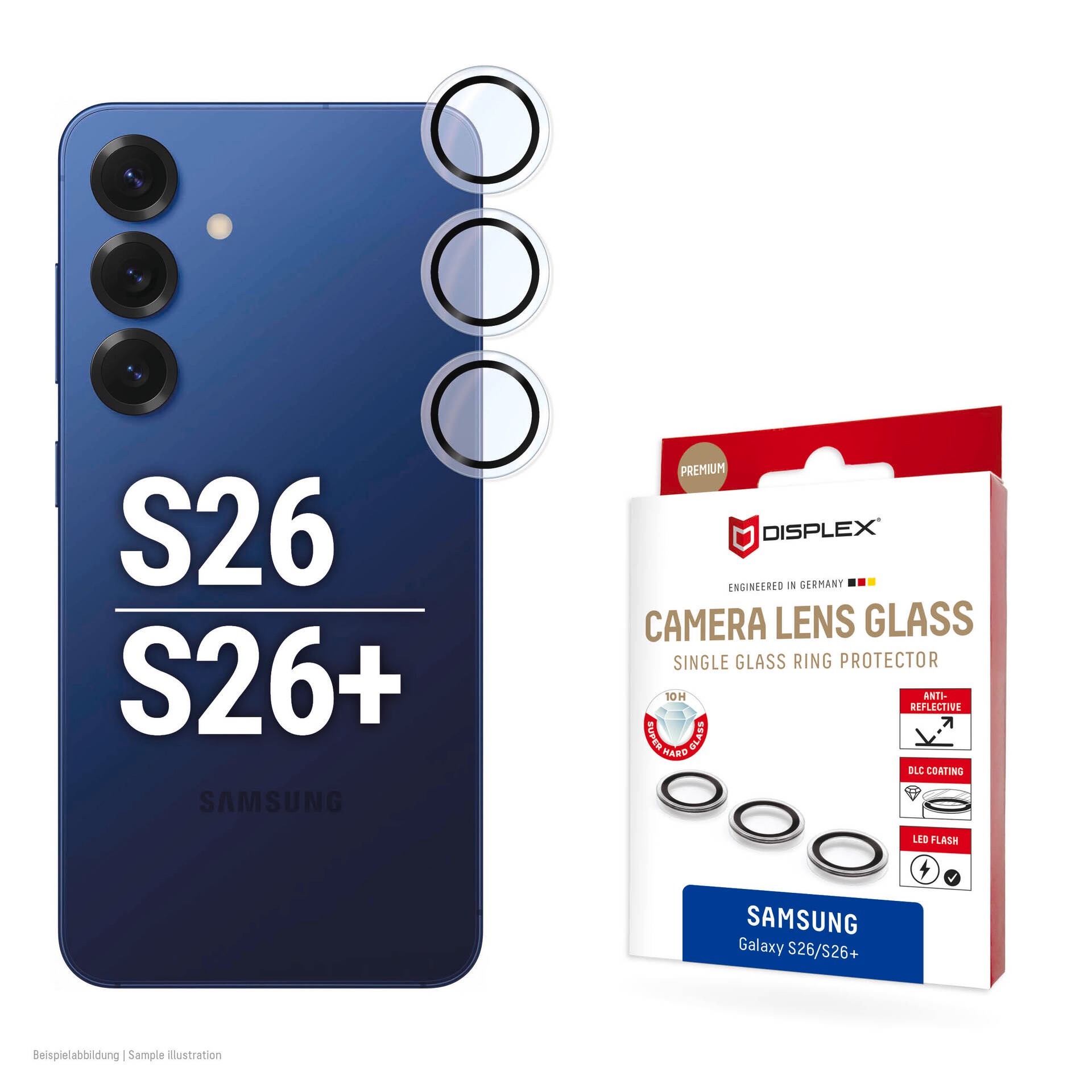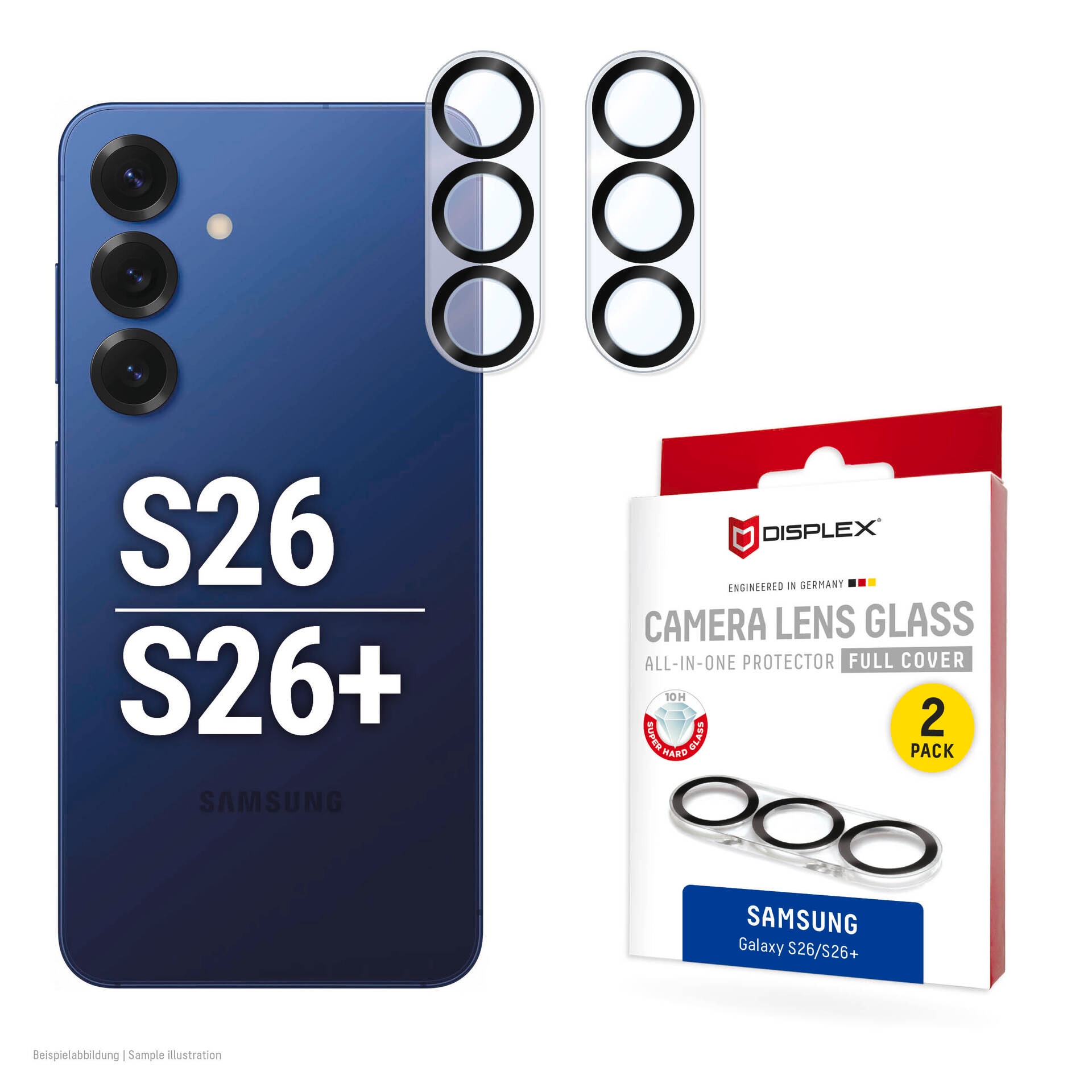 - 2er-Set mit 10H Schutzglas: die ultradünne, gehärtete Echtglasscheibe schützt die Kameralinsen des Samsung Galaxy S26/S26+ + 1 Ersatz-Schutzglas