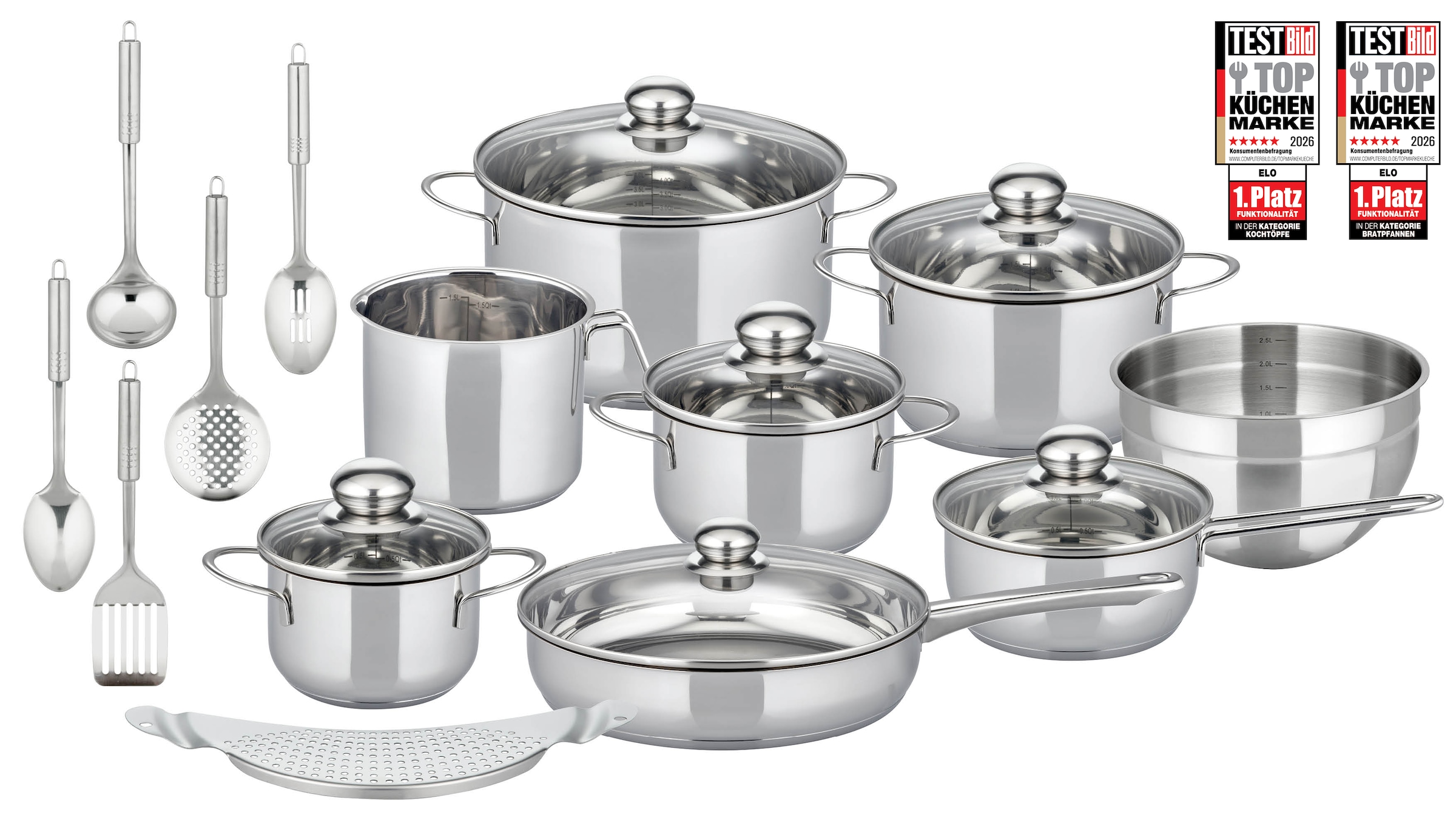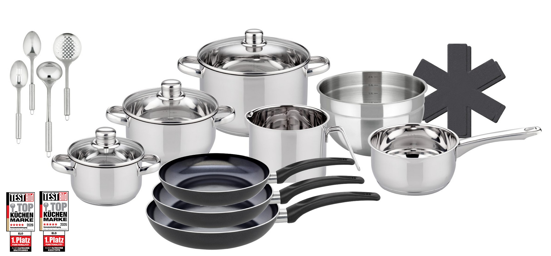 - Topf-Set »Galactica« Set, 5 Töpfe,3 Deckel, 3 Pfannen,1 Schüssel,4 Küchenhelfer, 2...Elo BasicUrsprünglicher PreisUVP 199,00 €Rabatt- 106,75 €Aktueller Preis92,25 €