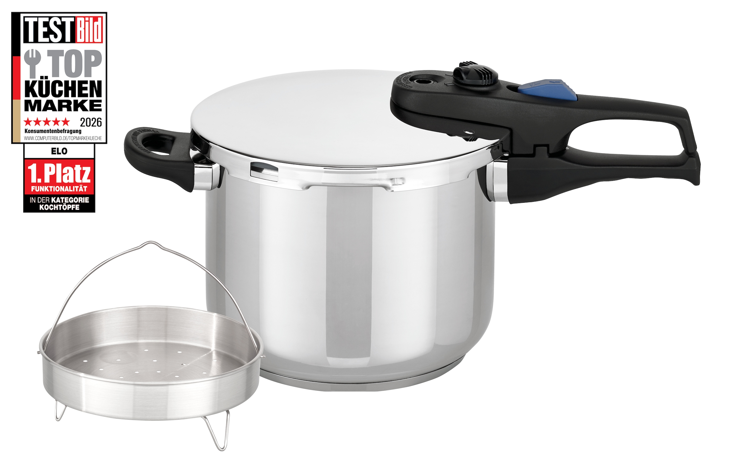 - Schnellkochtopf »Praktika Plus 6l mit Dünsteinsatz« Set, 3 Stk. tlg. Edelstahl 18/10 |...EloUrsprünglicher PreisUVP 159,00 €Rabatt- 80,60 €Aktueller Preis78,40 €