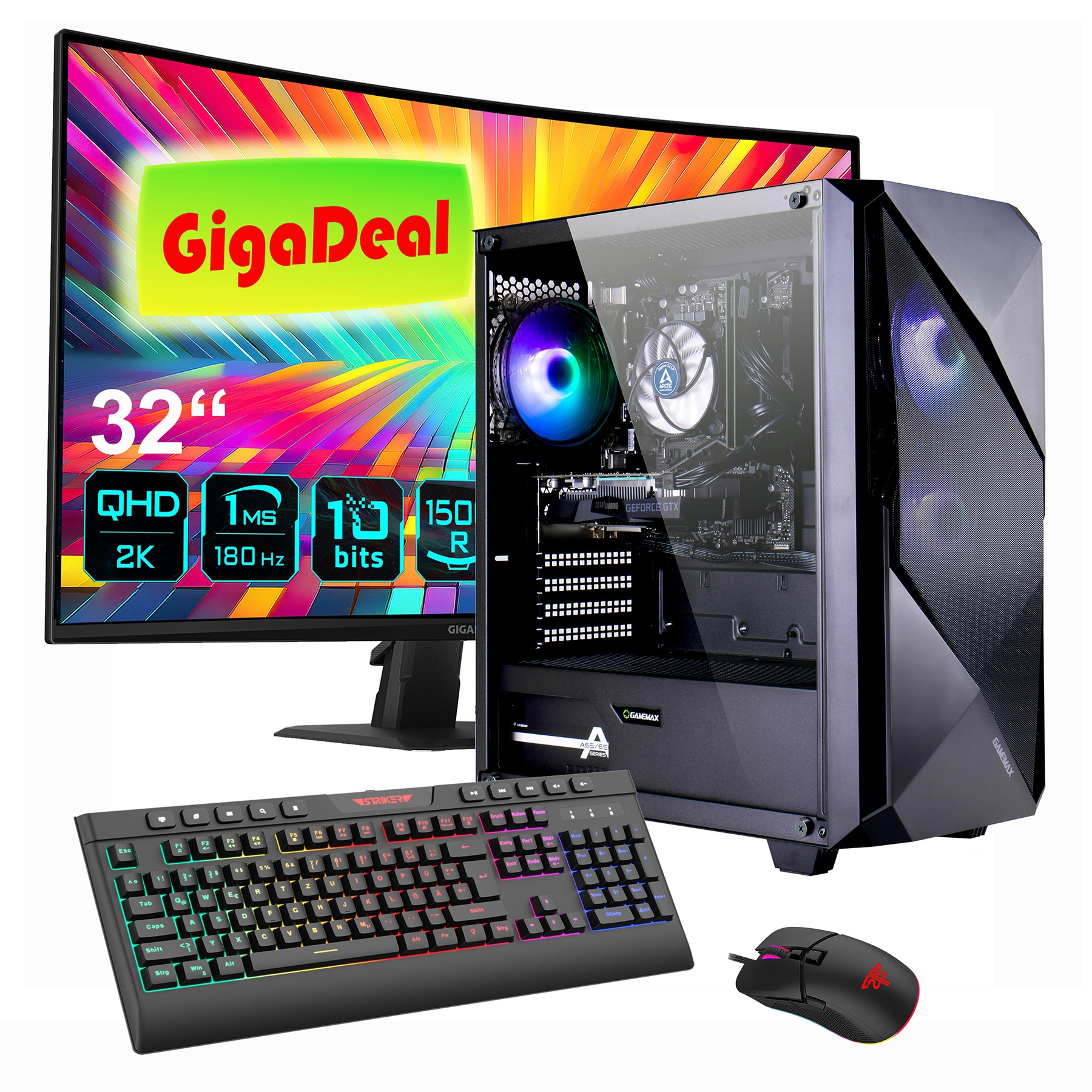 - Gaming-PC-Komplettsystem »MegaDeal Diamond WT SET2639« 32 ″ Intel® Core i5 GeForce...GAMEMAX