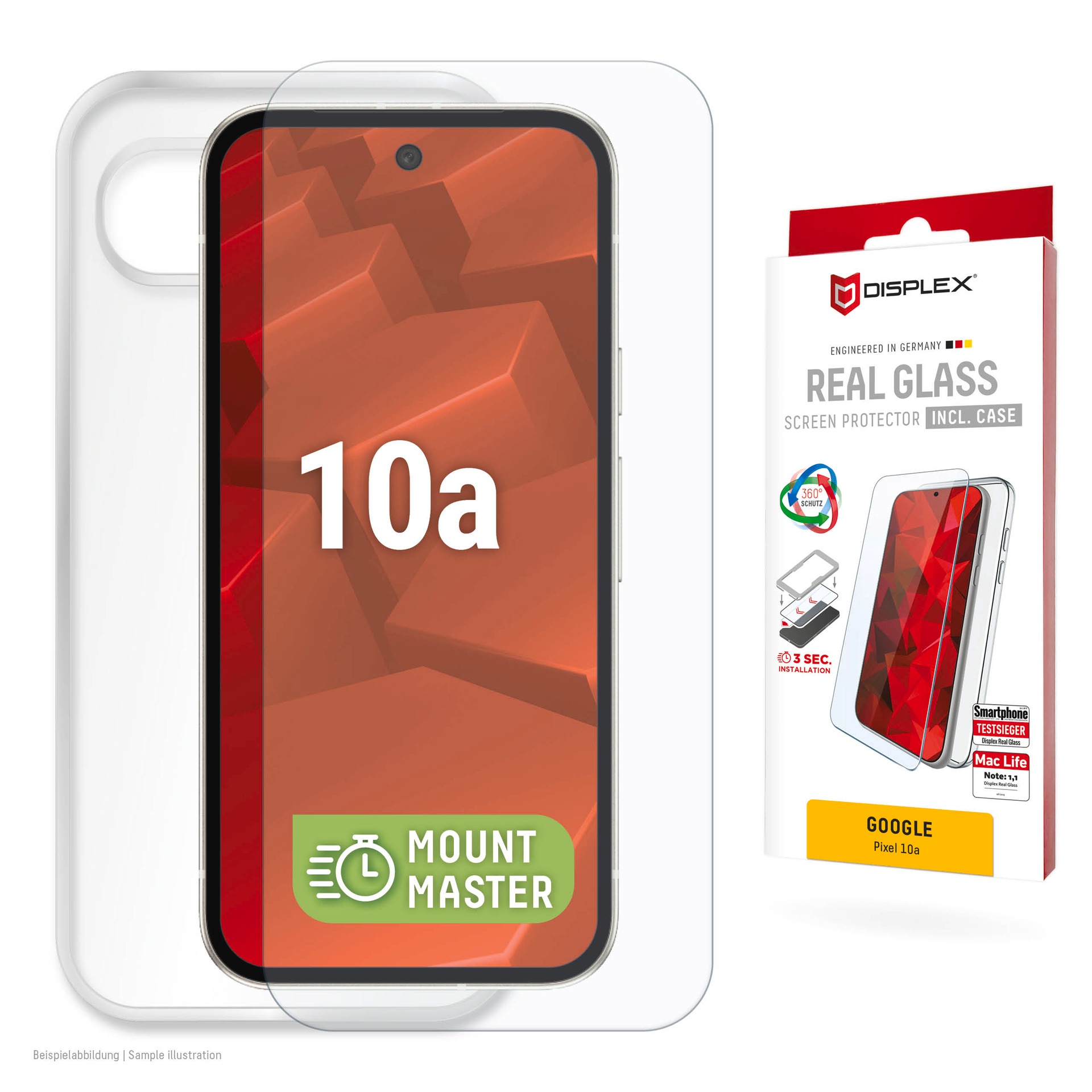 - Displayschutzglas »Real Glass Screen Protector mit MountMaster« für Google Pixel 10a...Displex