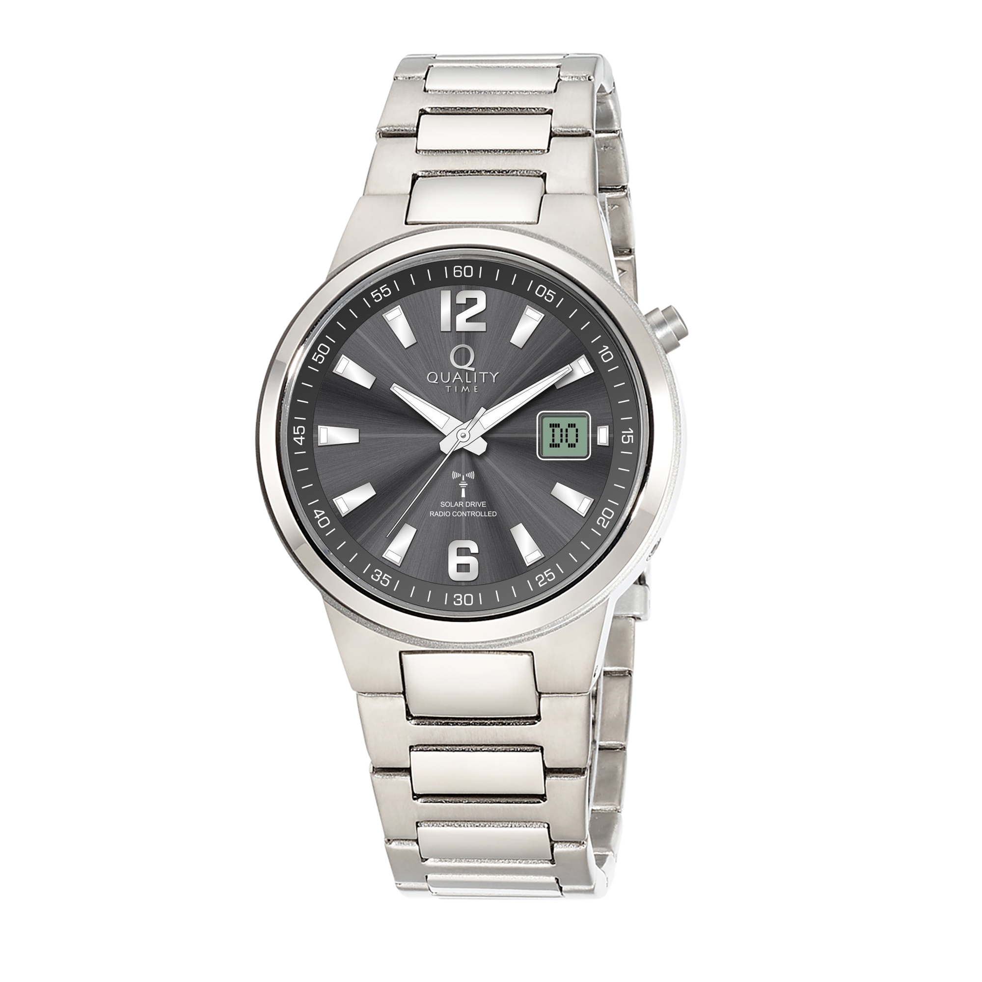 - Funkuhr Quarzuhr, Armbanduhr, Herrenuhr, Edelstahlarmband, analog, digitalQUALITY TIMEUrsprünglicher PreisUVP 69,95 €Rabatt- 49 %Aktueller Preis35,00 €