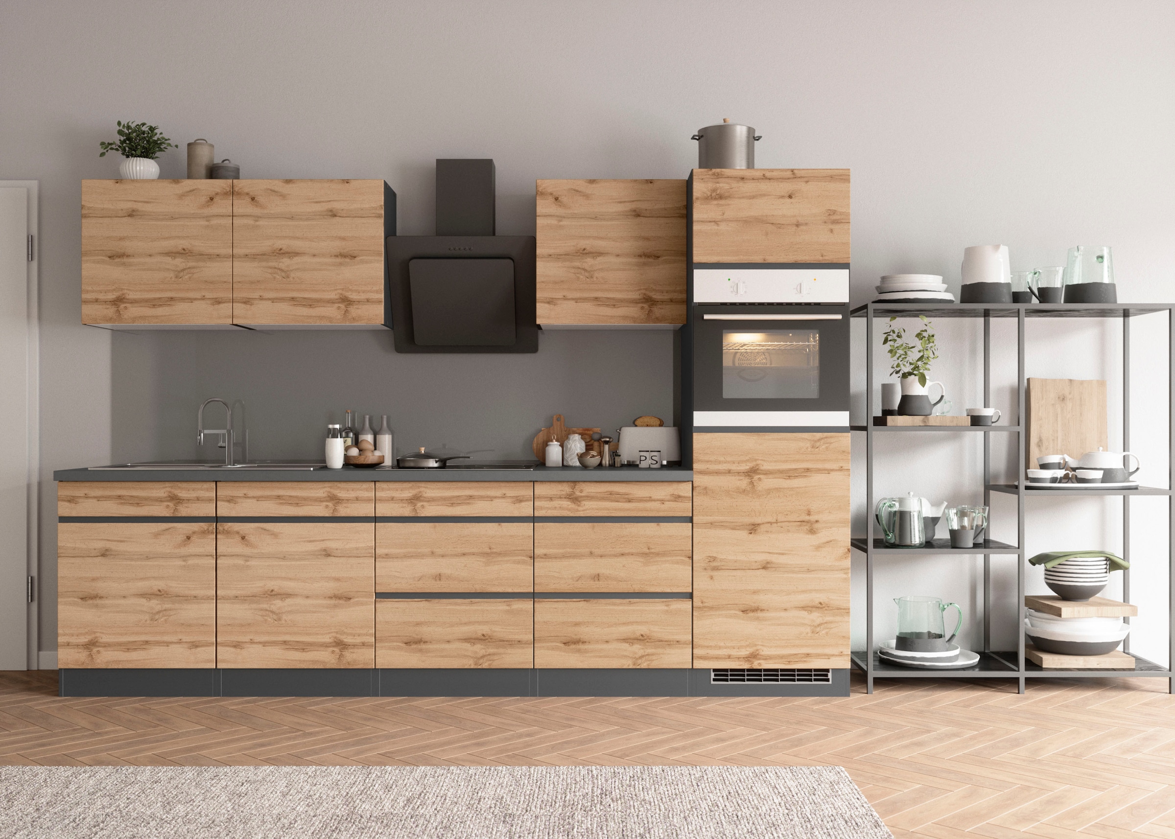 + Farben - Küchenzeile »KS-Milan« 300 cm breit, robuste Metallauszüge, viel StauraumKOCHSTATIONUrsprünglicher PreisUVP 2.055,00 €Rabatt- 587,01 €Aktueller Preisab 1.467,99 €