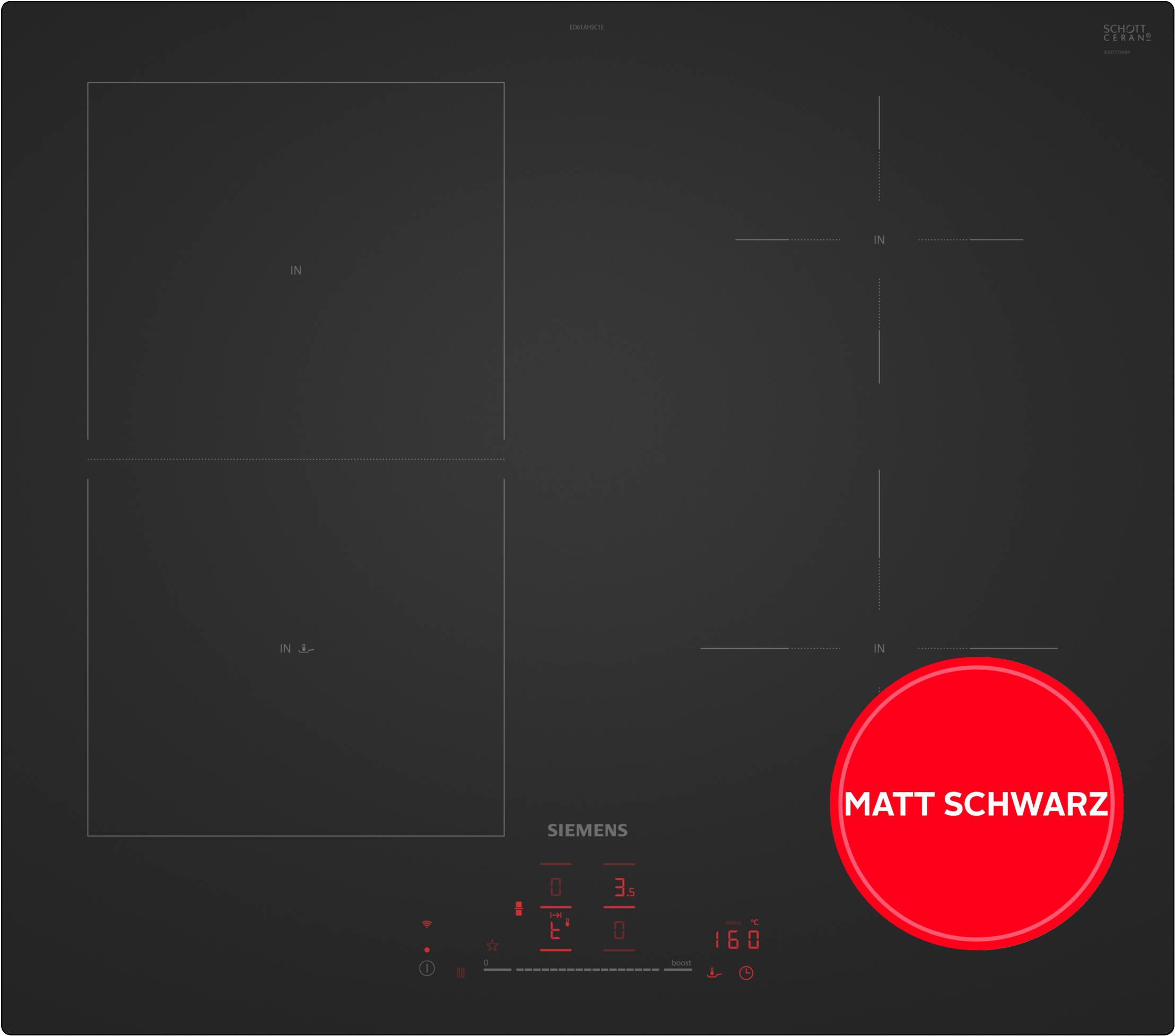 - Induktions-Kochfeld »ED61AHSC1E« Moderne matte Optik: 5x weniger sichtbare KratzerSIEMENS