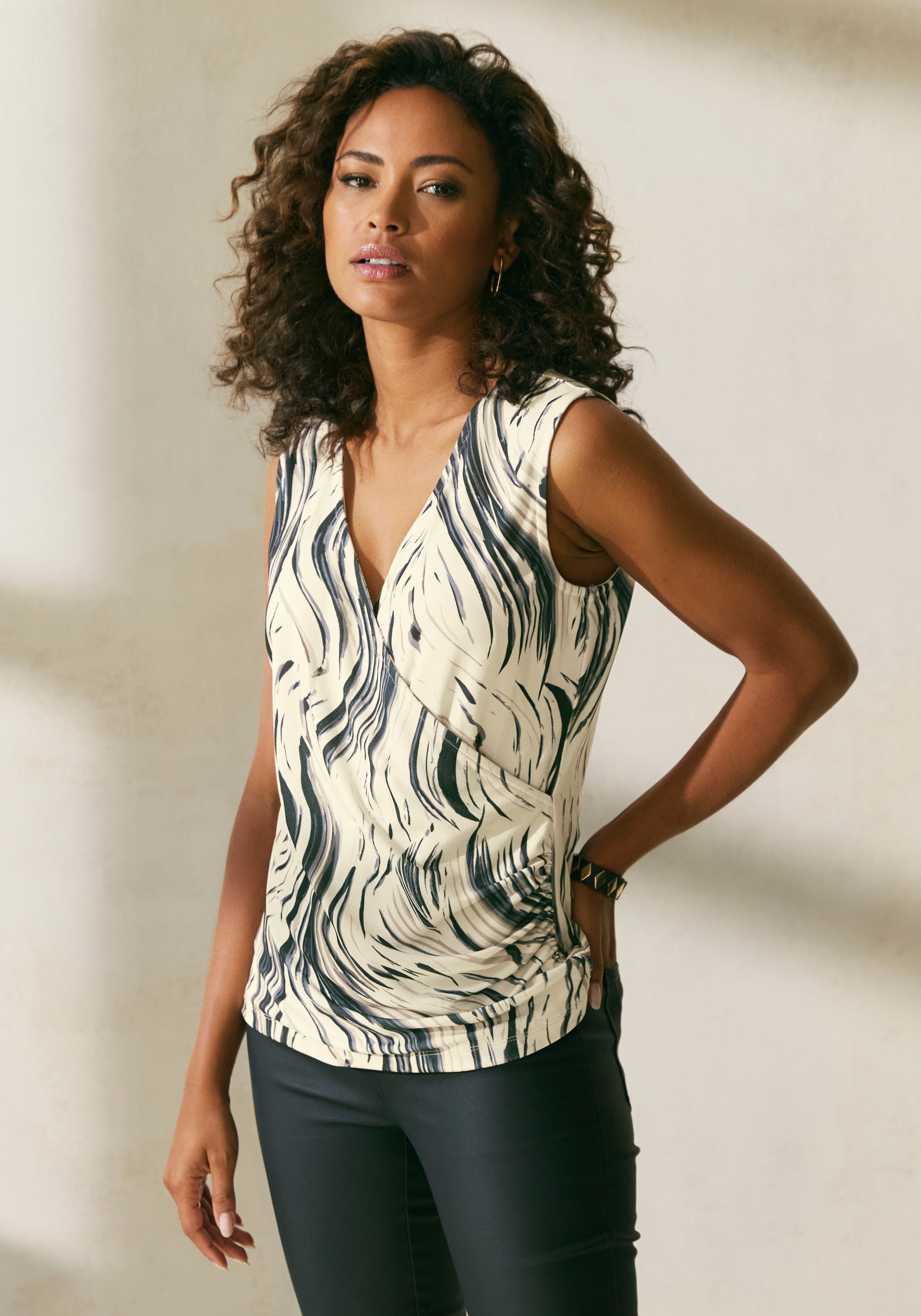 - LASCANATanktop in Wickeloptik, Blusentop mit Alloverdruck und seitlicher Raffung