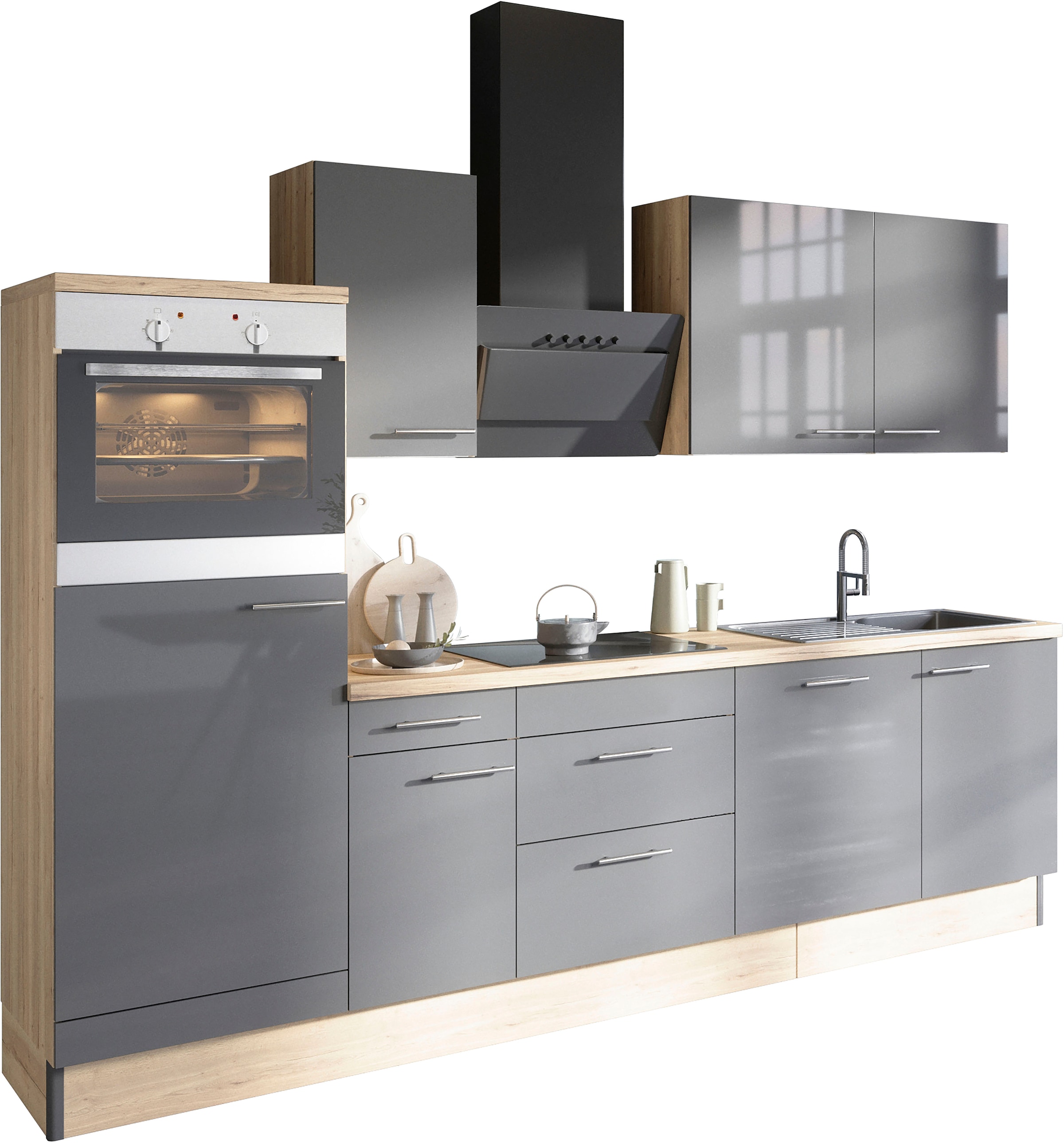 - Küchenzeile »Lund« wahlweise mit E-Geräten, Breite 280 cm, glänzende FrontenFlex-WellUrsprünglicher PreisUVP 1.489,00 €Rabatt- 381,01 €Aktueller Preisab 1.107,99 €KühlschrankProduktdatenblattBackofenProduktdatenblattGeschirrspülerProduktdatenblattDunstabzugshaubeProduktdatenblatt
