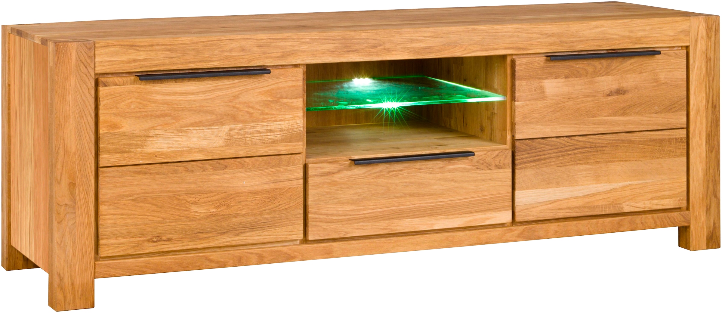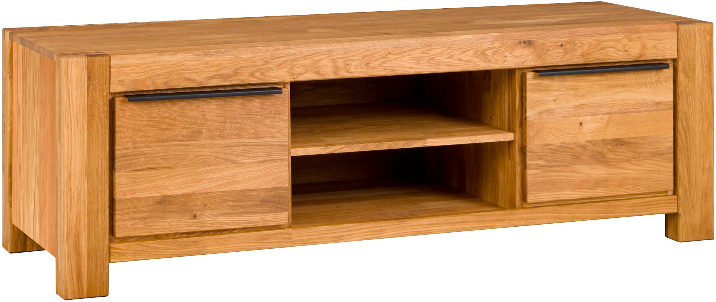 Neu - Lowboard Eiche teilmassiv, B: 155 cm, schwarze Elemente, 2 offene Fächer.Home affaireUrsprünglicher PreisUVP 797,99 €Rabatt- 128,00 €Aktueller Preis669,99 €
