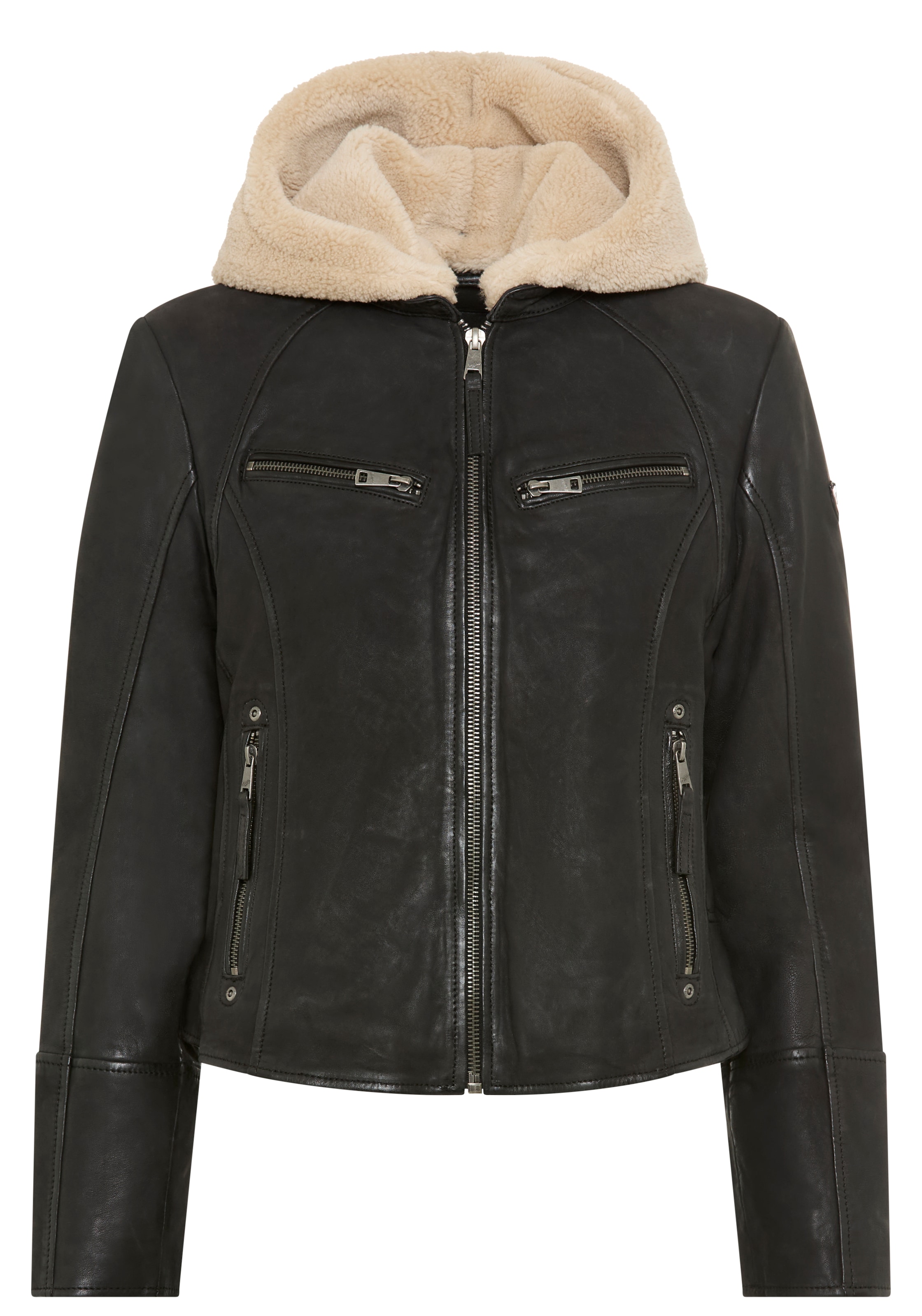 - Lederjacke »MMHayato 2 SF« mit Kapuze mit Ziersteppung, abnehmbare KapuzeMauritiusUrsprünglicher PreisUVP 199,90 €Rabatt- 14 %Aktueller Preis169,99 €