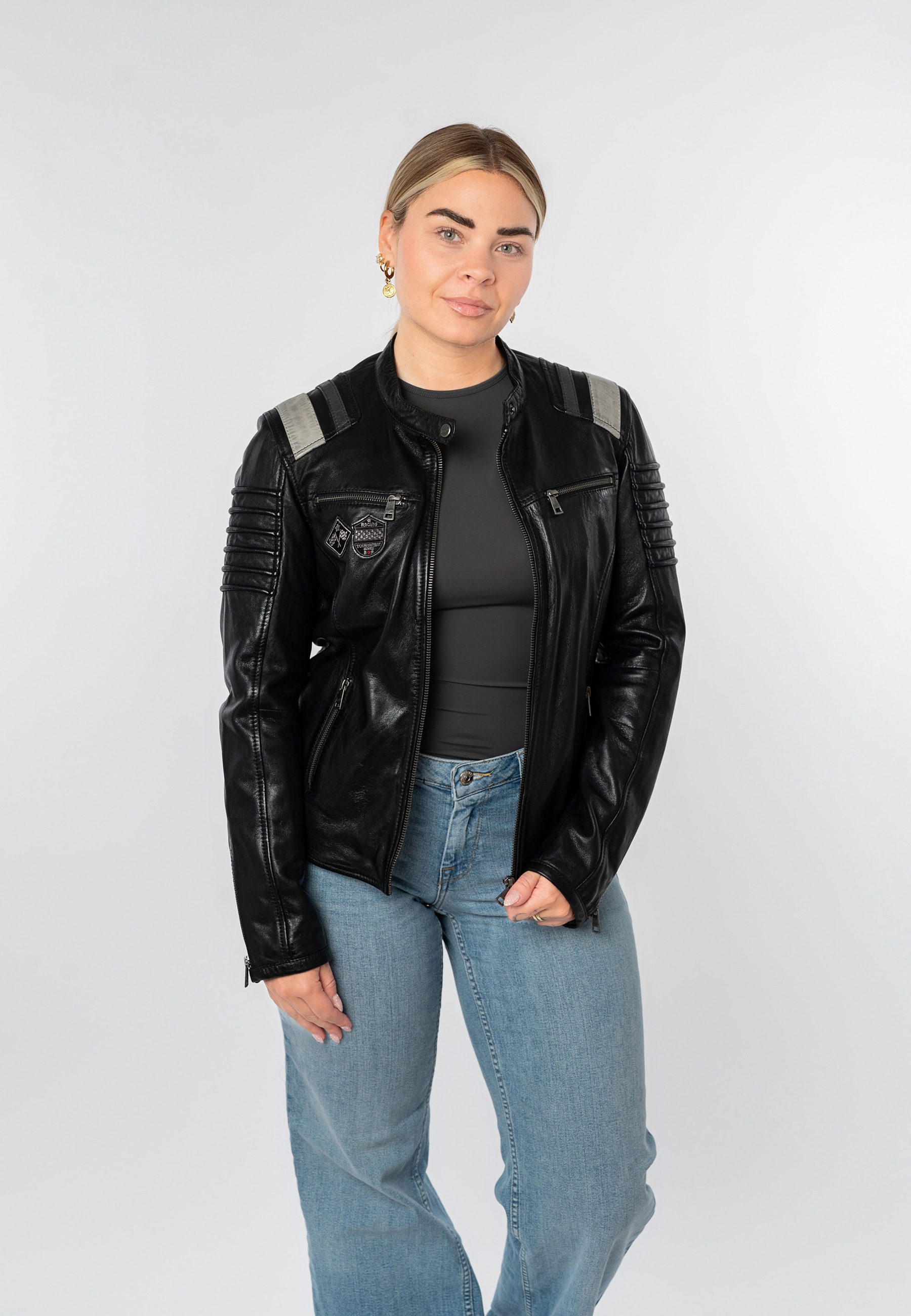Neu - Lederjacke »MWAgatha« Racerjacke mit LederpatchesMauritiusAktueller Preisab 199,90 €