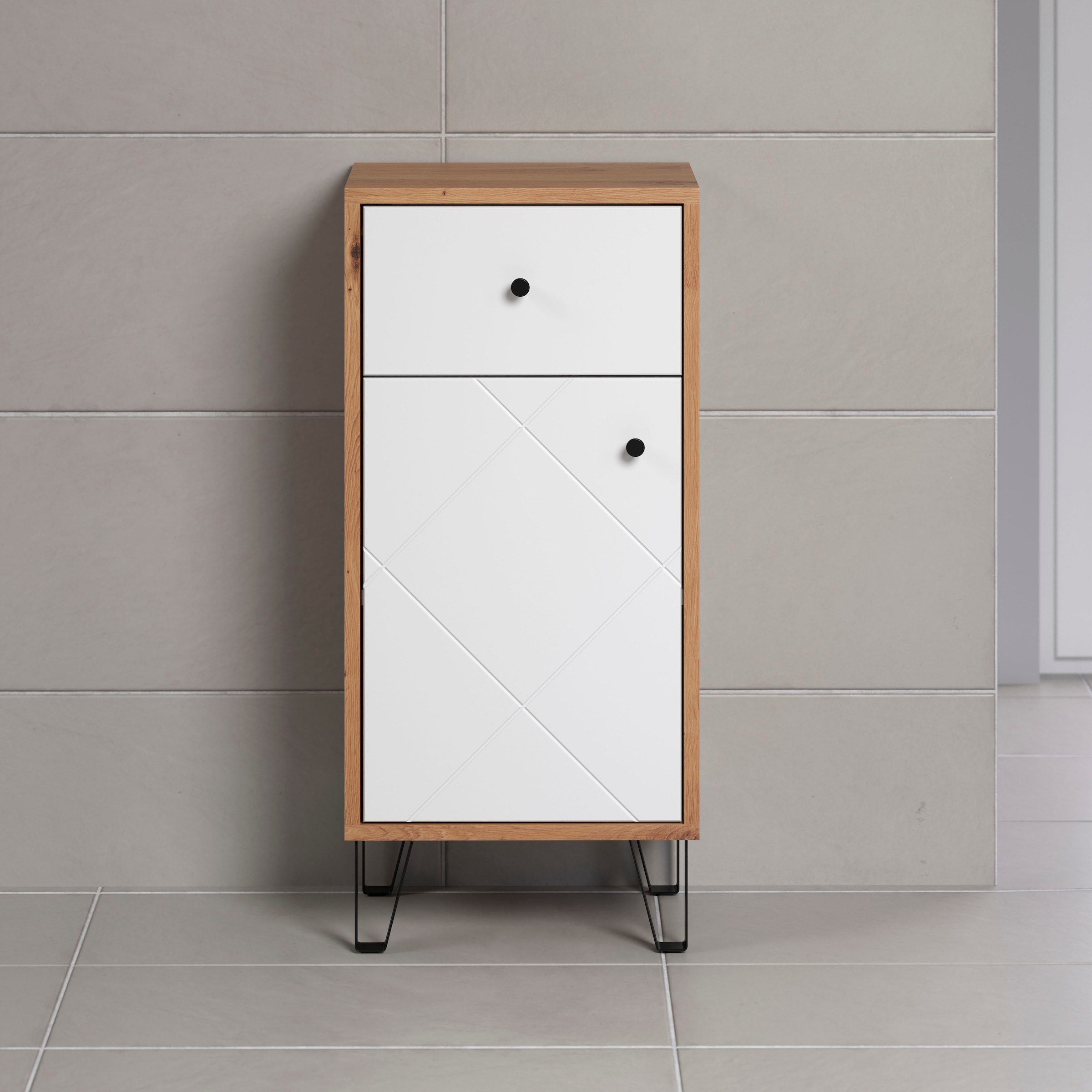 + Farben - Unterschrank »Tarragona« 1 Stk. tlg. Badezimmerschrank mit Fräsungen in Rautenoptik in...PLACES OF STYLEUrsprünglicher PreisUVP 129,00 €Rabatt- 17 %Aktueller Preis106,63 €
