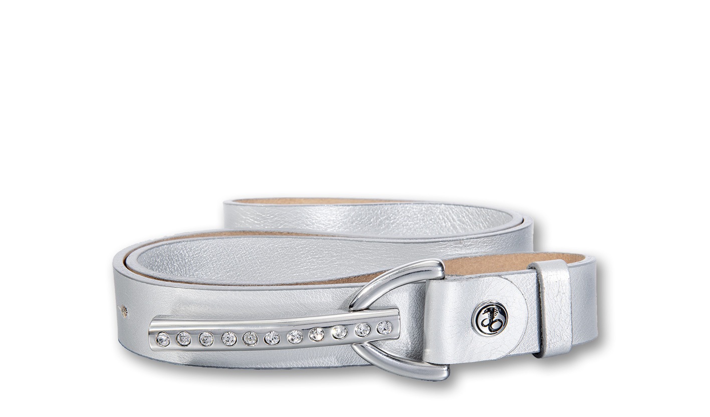 + Farben - Ledergürtel mit GlitzeroberflächeSilbergiftAktueller Preis34,95 €