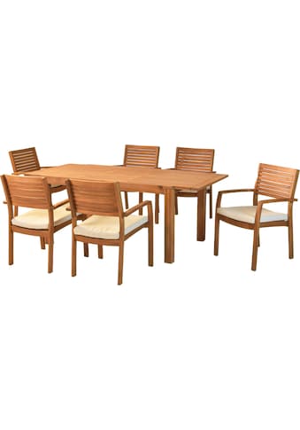 - Garten-Essgruppe »Batavia« Set, 13 tlg. inkl. 6 Stapelsessel, 6 Auflagen, 1 AusziehtischMERXXUrsprünglicher PreisUVP 1.814,90 €Rabatt- 1.015,01 €Aktueller Preis799,89 €