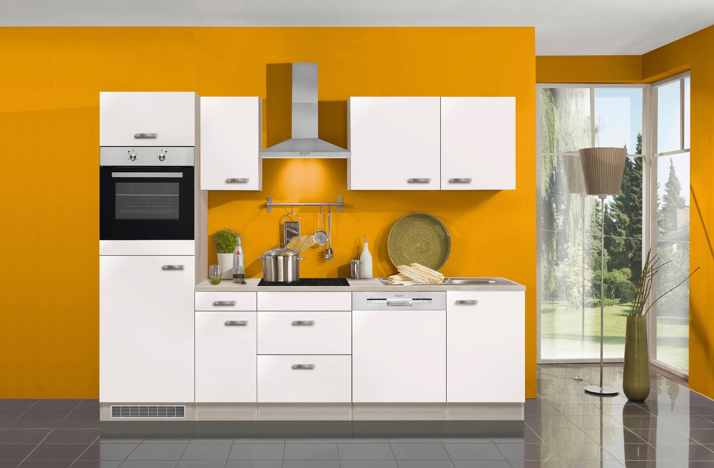 - Küchenzeile »Faro« Breite 270 cm, wahlweise mit E-Geräten, mit ArbeitsplatteOPTIFITUrsprünglicher PreisUVP 1.359,00 €Rabatt- 169,01 €Aktueller Preis1.189,99 €KühlschrankProduktdatenblattBackofenProduktdatenblattGeschirrspülerProduktdatenblattDunstabzugshaubeProduktdatenblatt